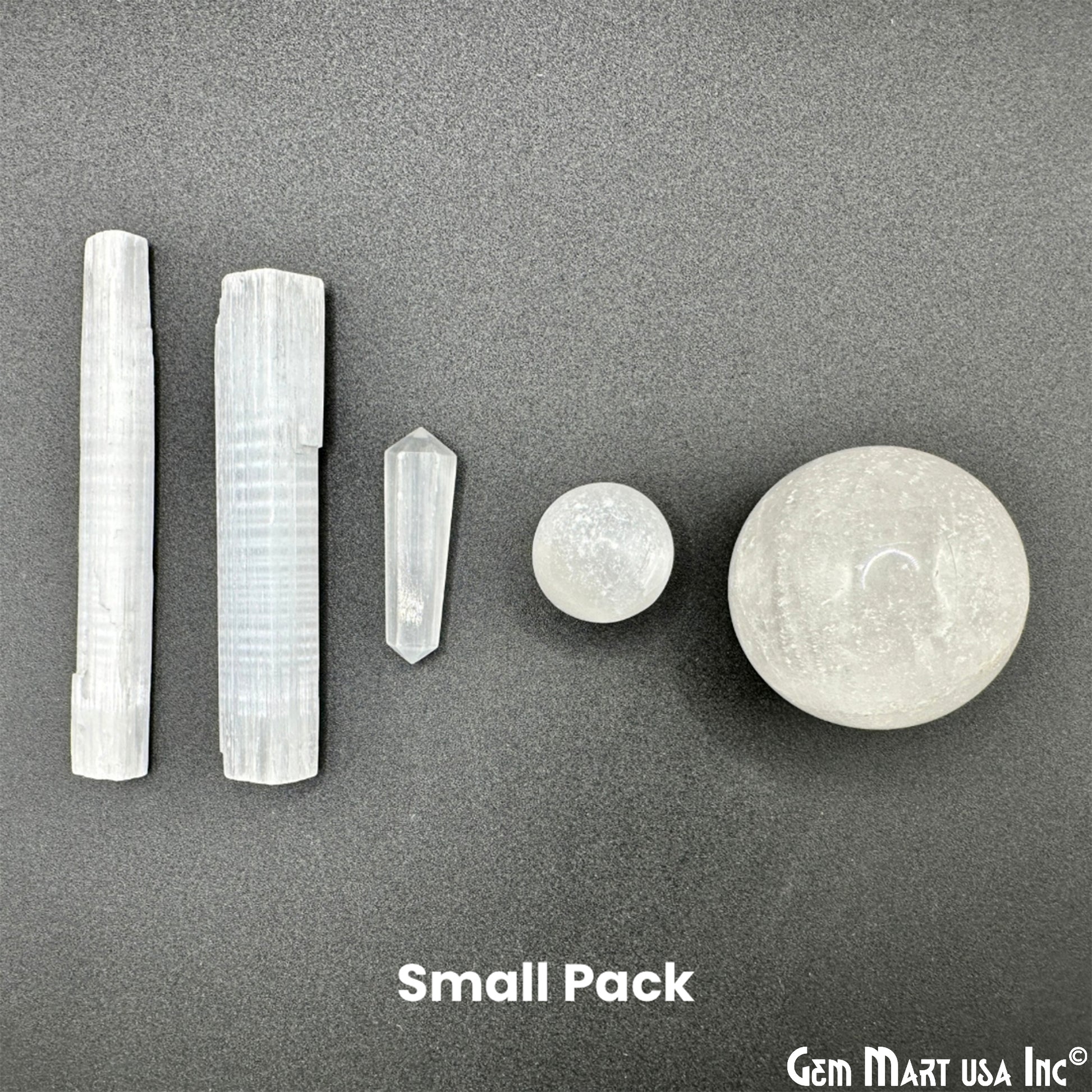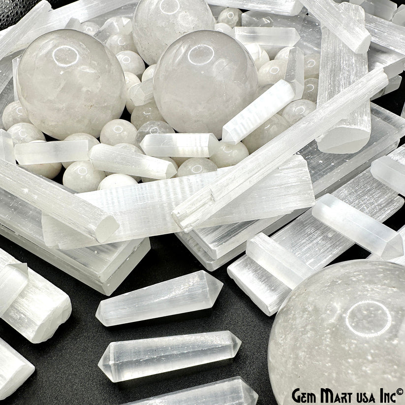 Selenite Crystals Pack, Bulk Selenite Wand and Sphere, 100% Natural Gemstones, Wholesale Resale Supply, Gift Set, 5pcs+, GemMartUSA
