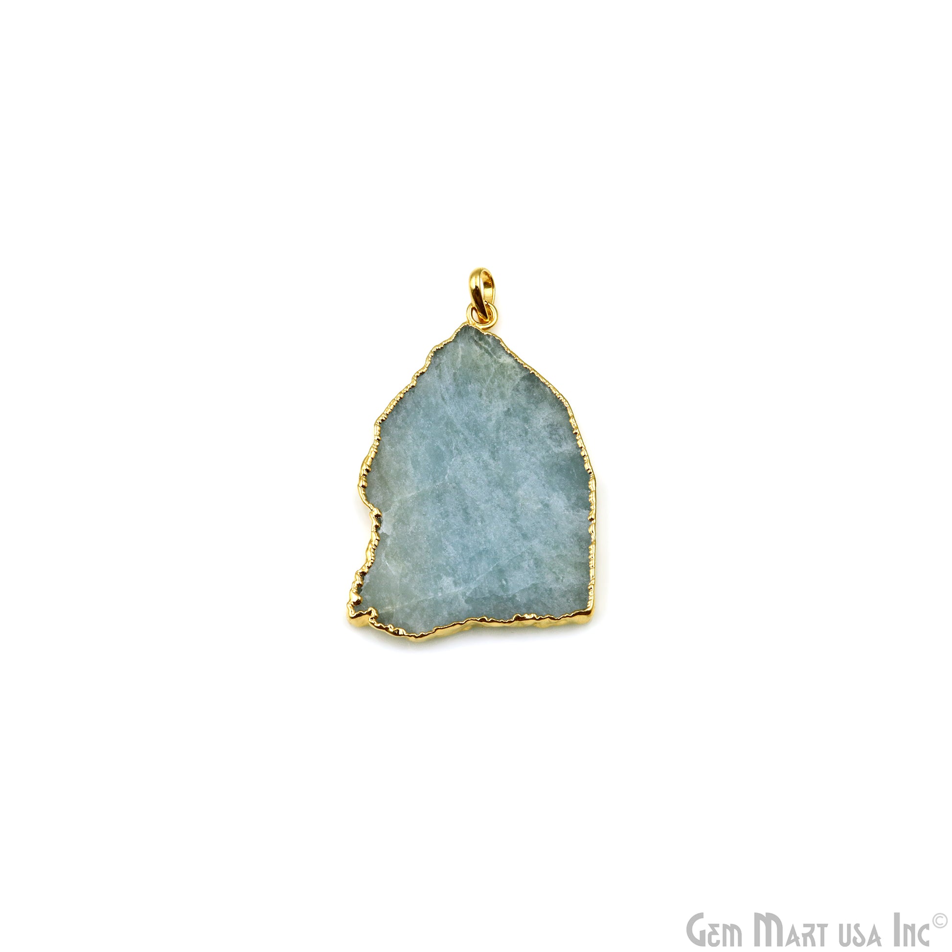 Aquamarine Free Form shape 53x36mm Gold Electroplated Gemstone Single Bail Pendant