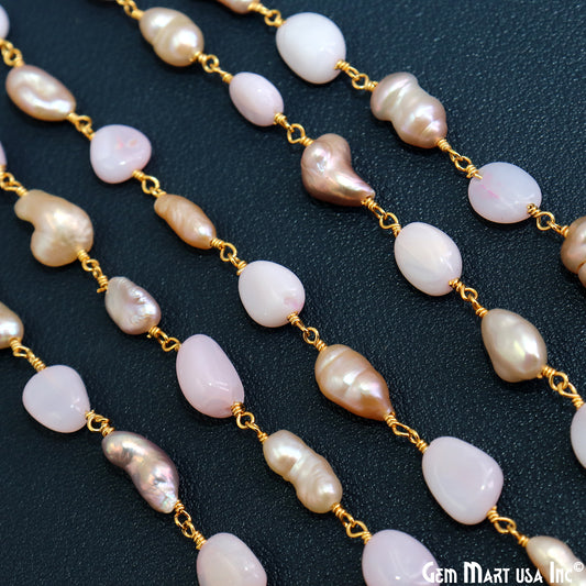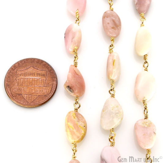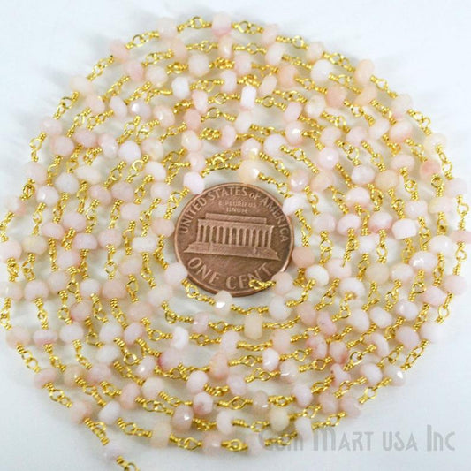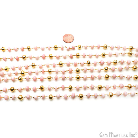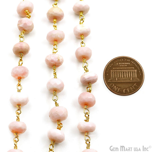 Pink Opal Faceted Beads Gold Wir...