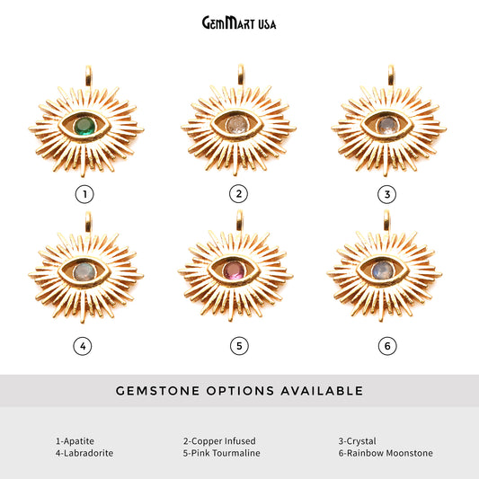 +8Evil Eye Gemstone 18x16mm Gold P...