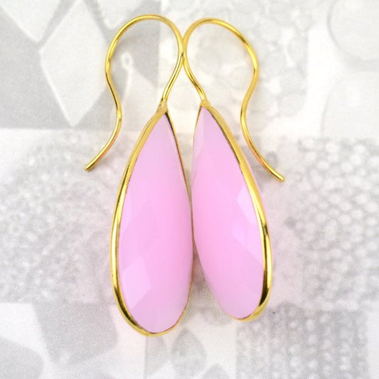 Rose Chalcedony 16x47mm Gold Pla...