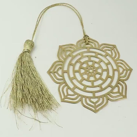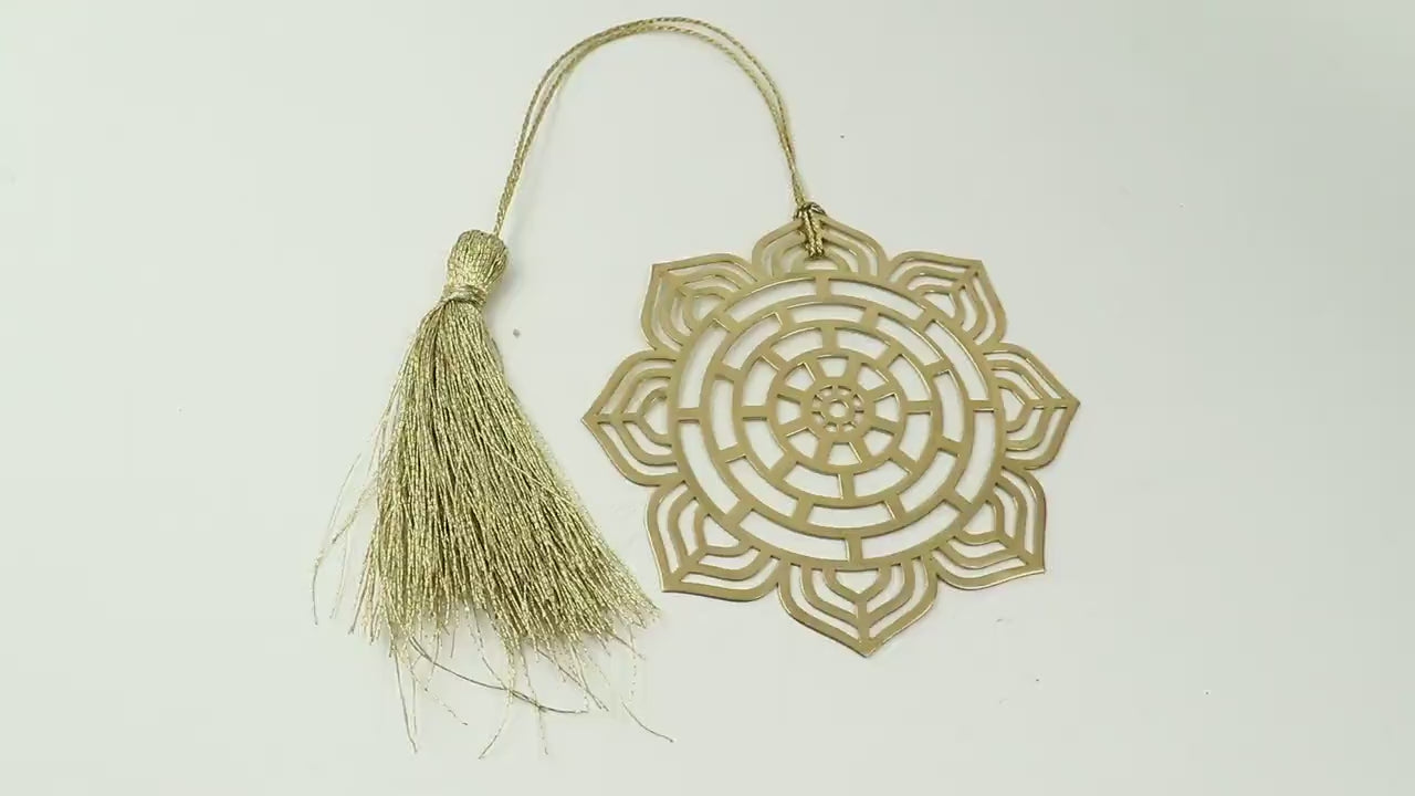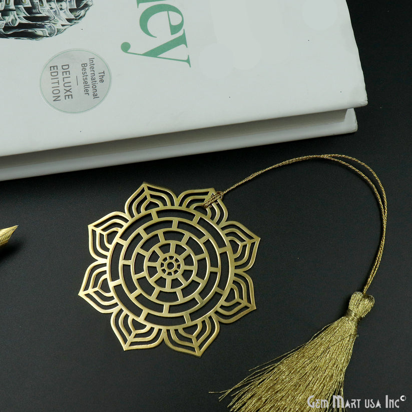 Mandala Lotus Circular Brass Metal Bookmark with tassel Gold Plated Finish Reader’s Gift Mother’s Day Gift Him Her Anniversary & Souvenir