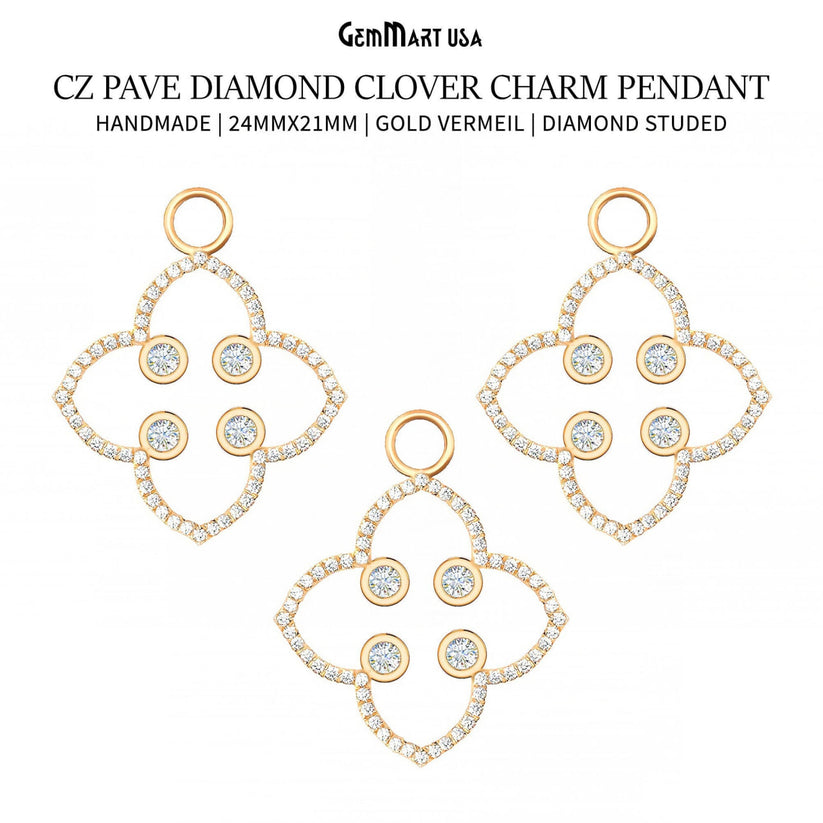 Cubic Zircon Pave 'Clover' Gold Vermeil Charm For Bracelet & Pendants