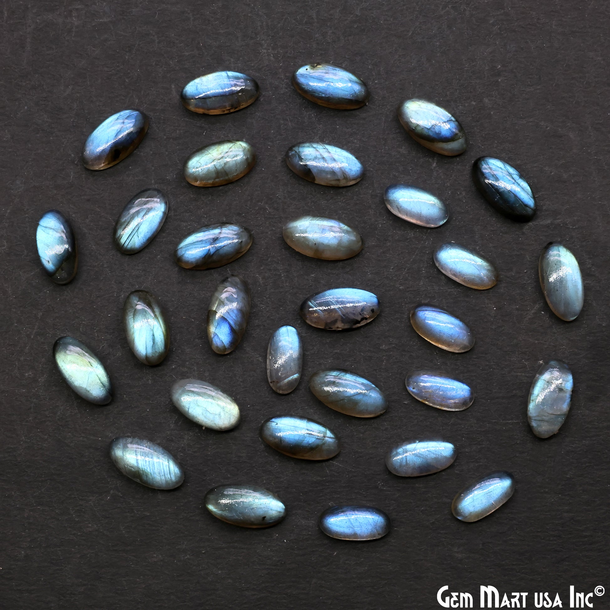 Labradorite Wholesale Gemstones, 100% Natural Semi-Precious Gems, Blue Flash Cabochon Loose Gems, 14x6mm, Oval, 4PC Lot