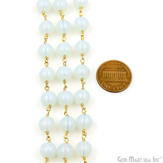 White Opal Smooth Beads 8mm Gold...