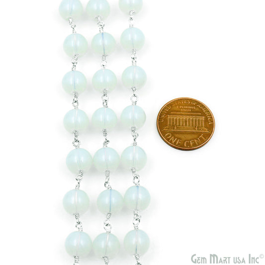 White Opal Smooth Beads 8mm Silv...
