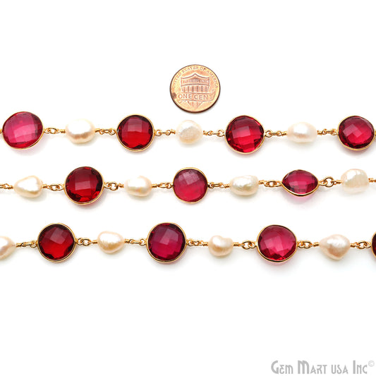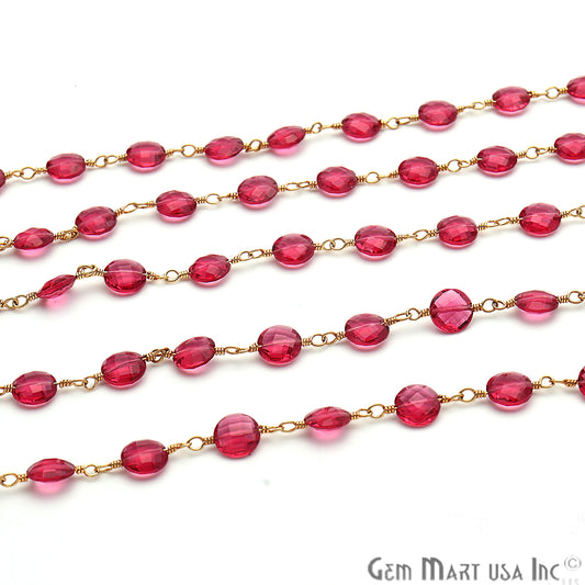 Pink Tourmaline Beads Gold Plate...