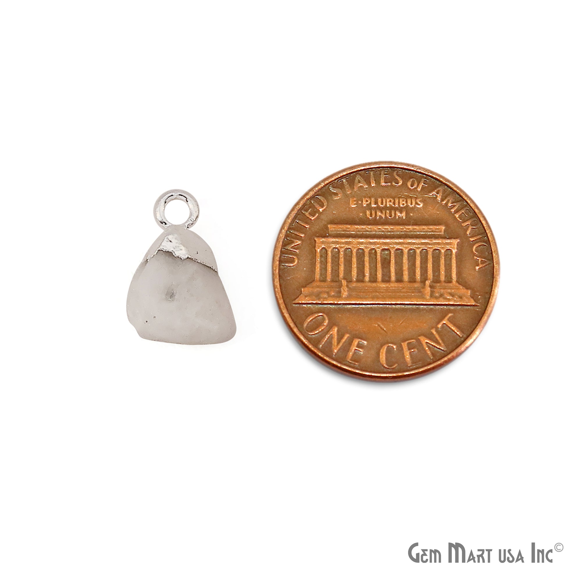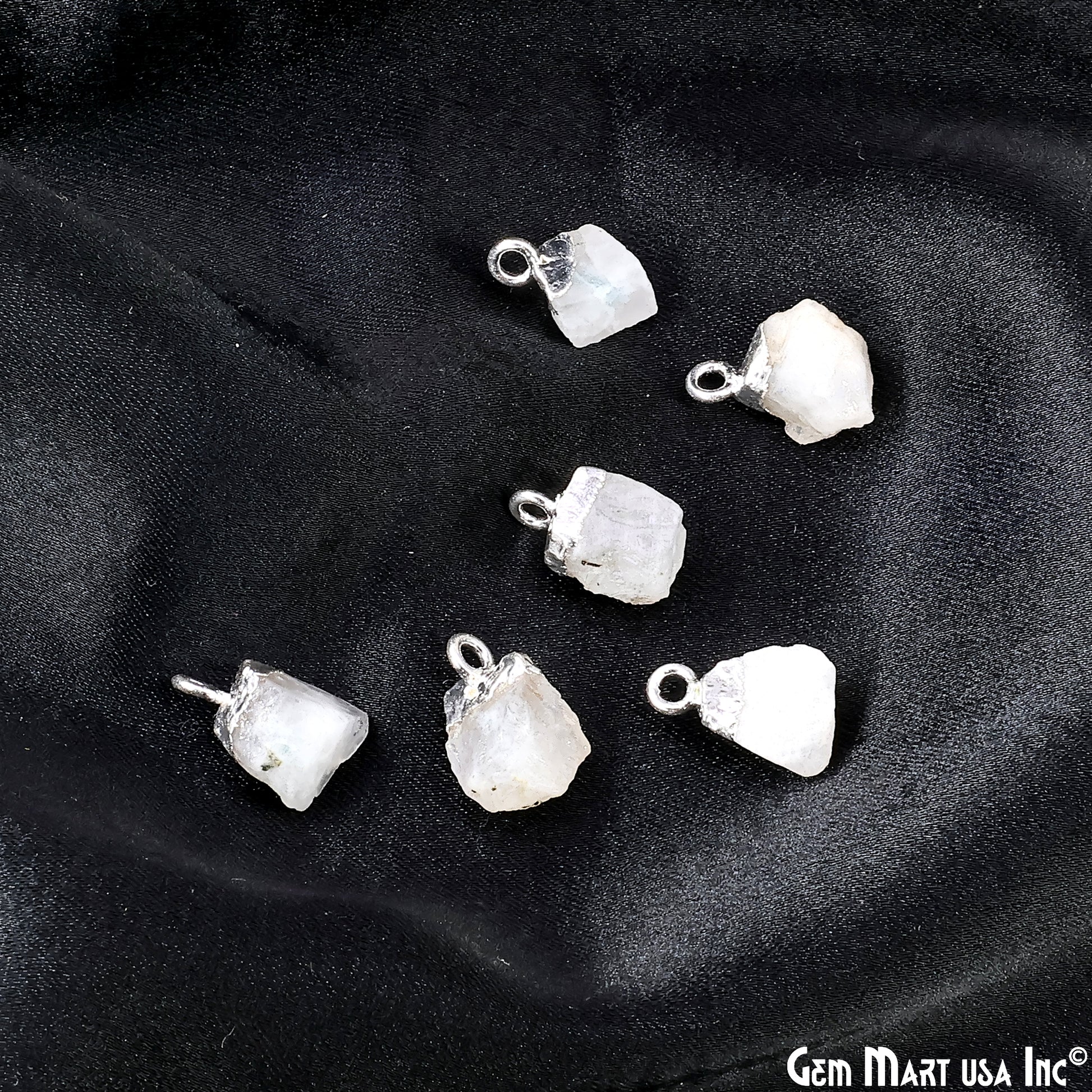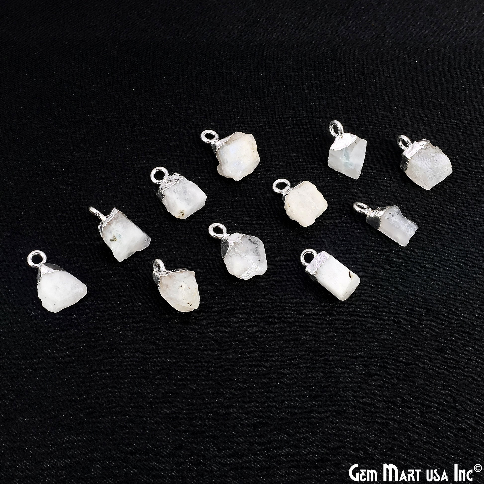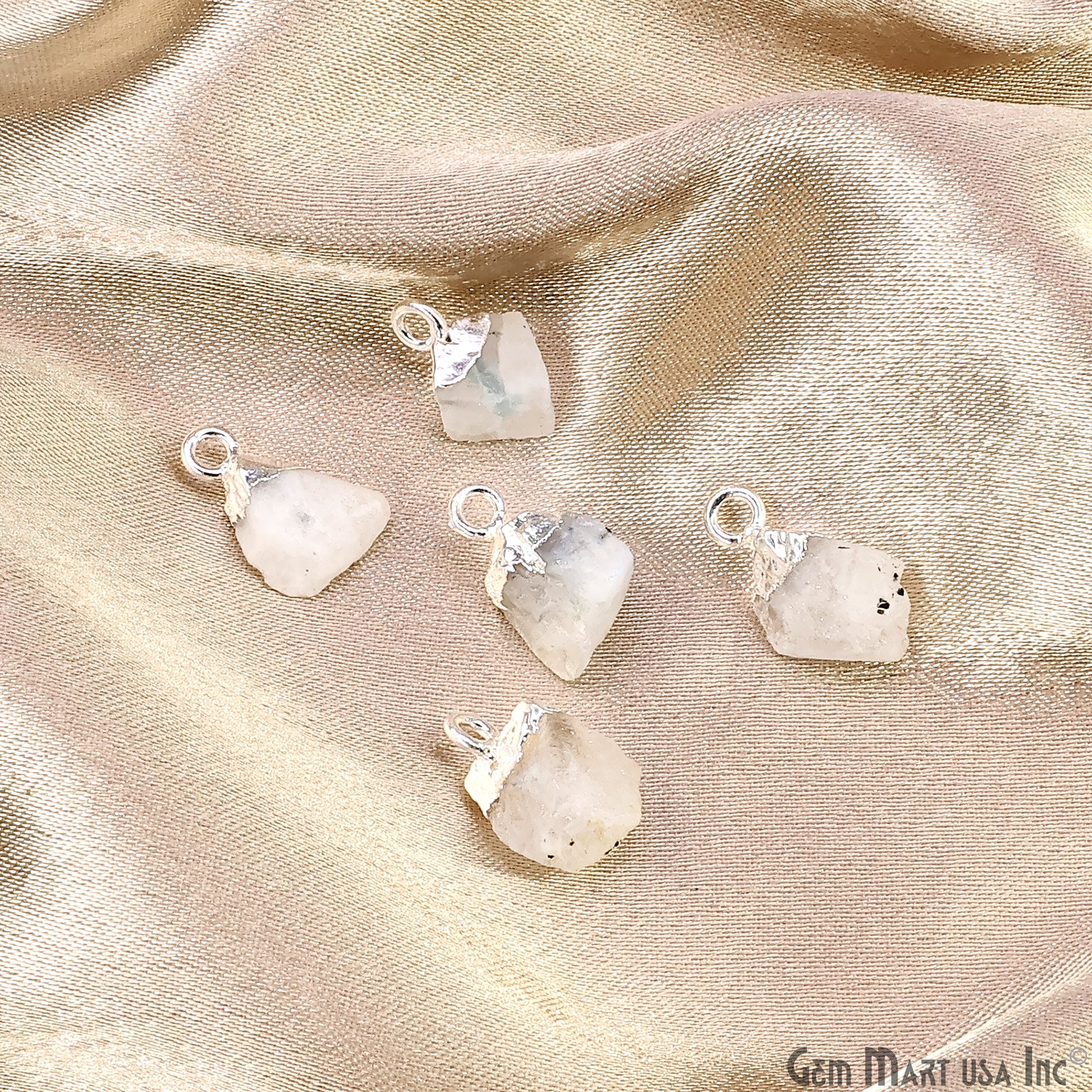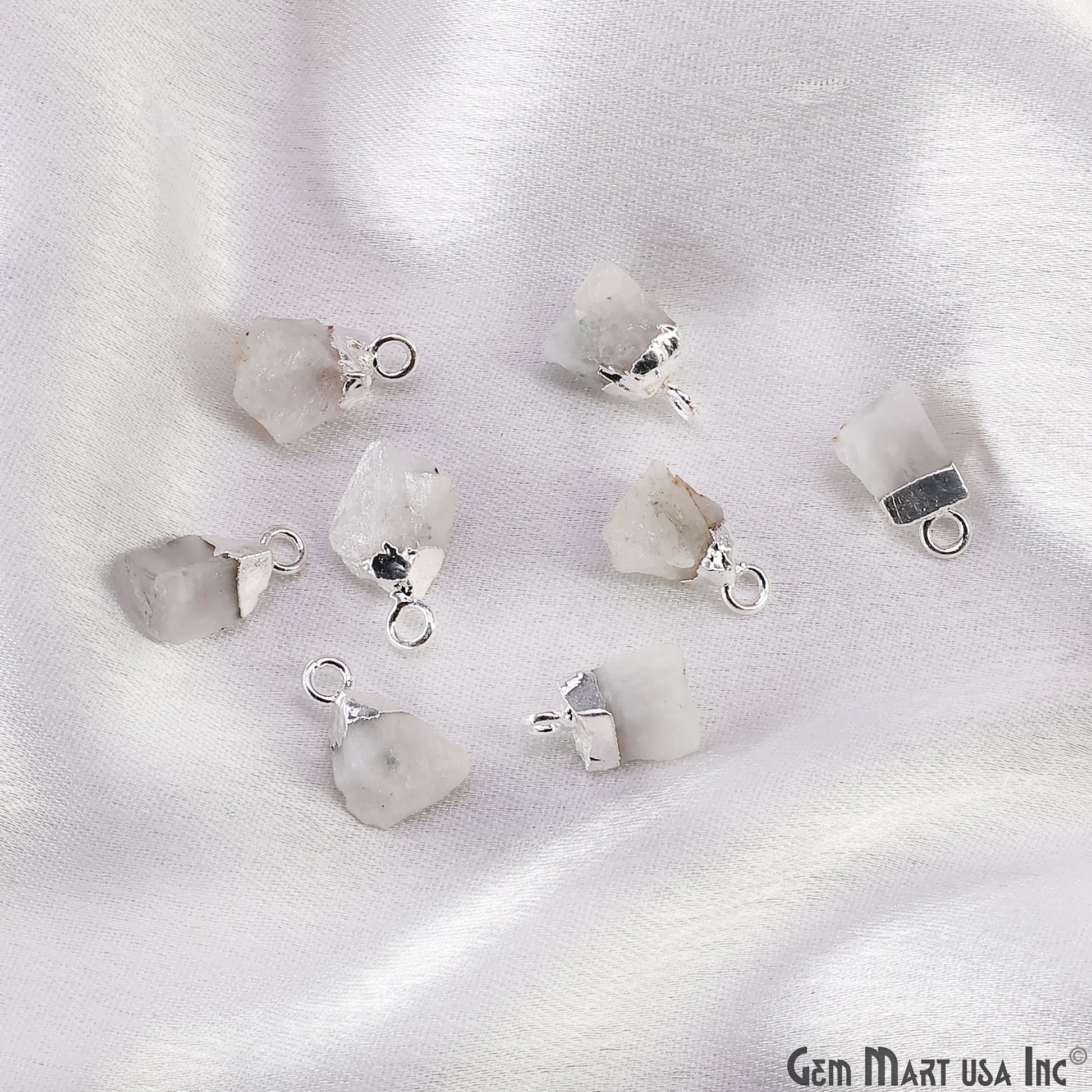 Rough Rainbow Moonstone Gemstone Organic Silver Edged Single Bail Connector