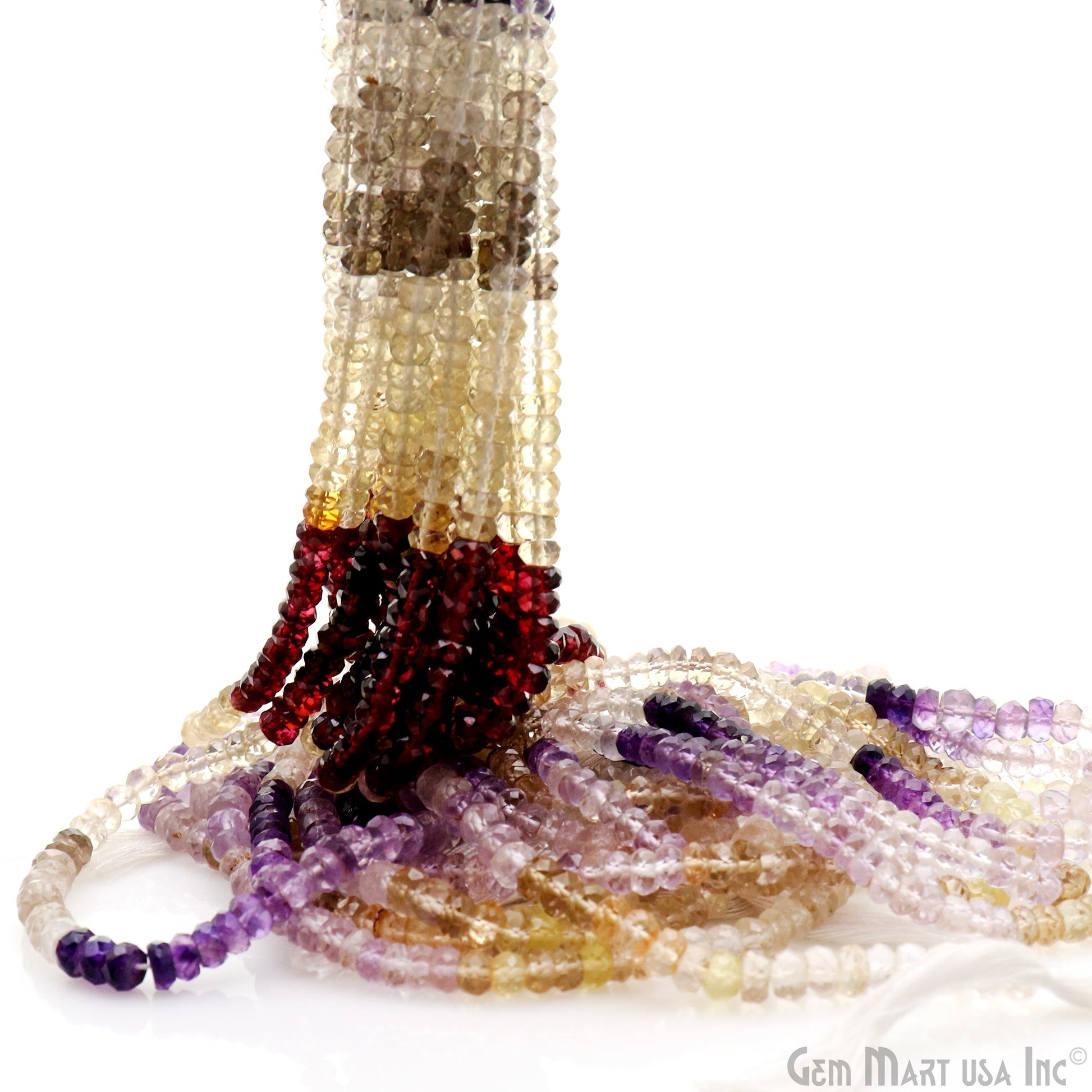 Gemstone Rondelle Bead Strands, Round Faceted, Polished Beads, Handmade Rondelle Beads, 12.5-inch, 3-4mm Round Strands for DIY Jewelry Making