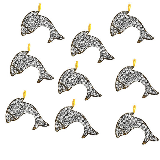 Fish Charms Diamond CZ Pave Gold...
