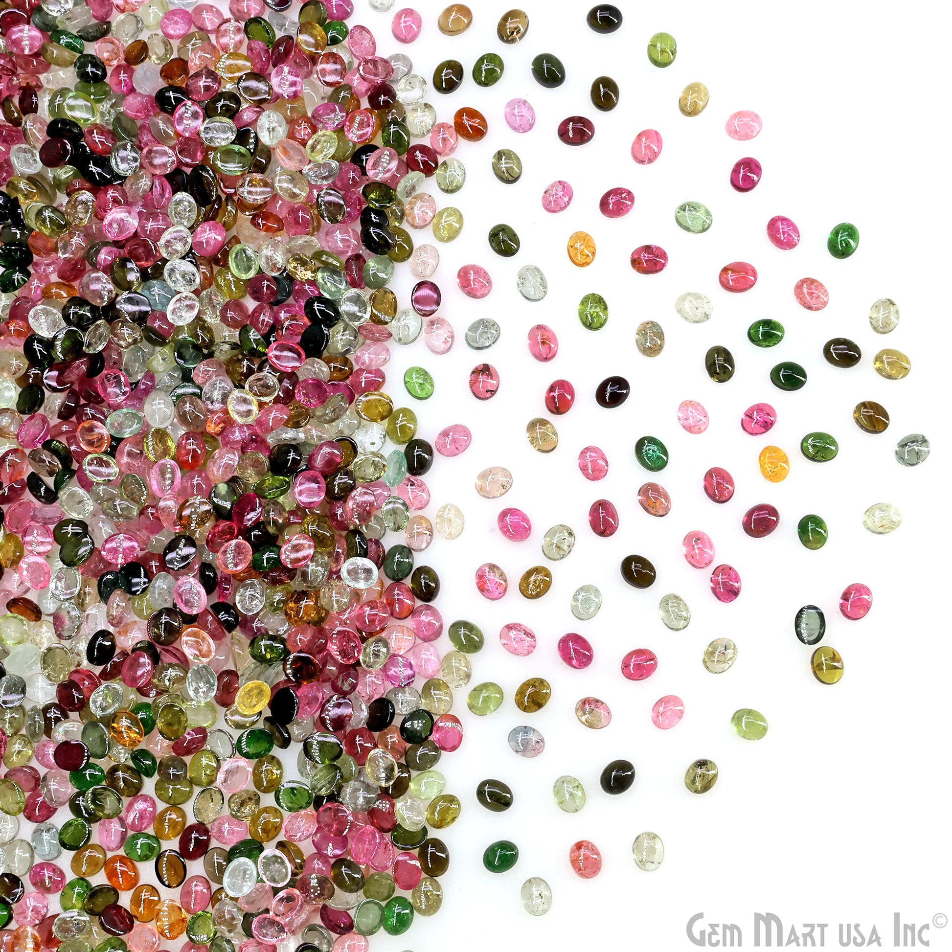 Multi Tourmaline Wholesale Gemstones, 100% Natural Semi-Precious Gems, Multi Color Cabochons Loose Gems, 4x5mm, Oval, 5 Carats