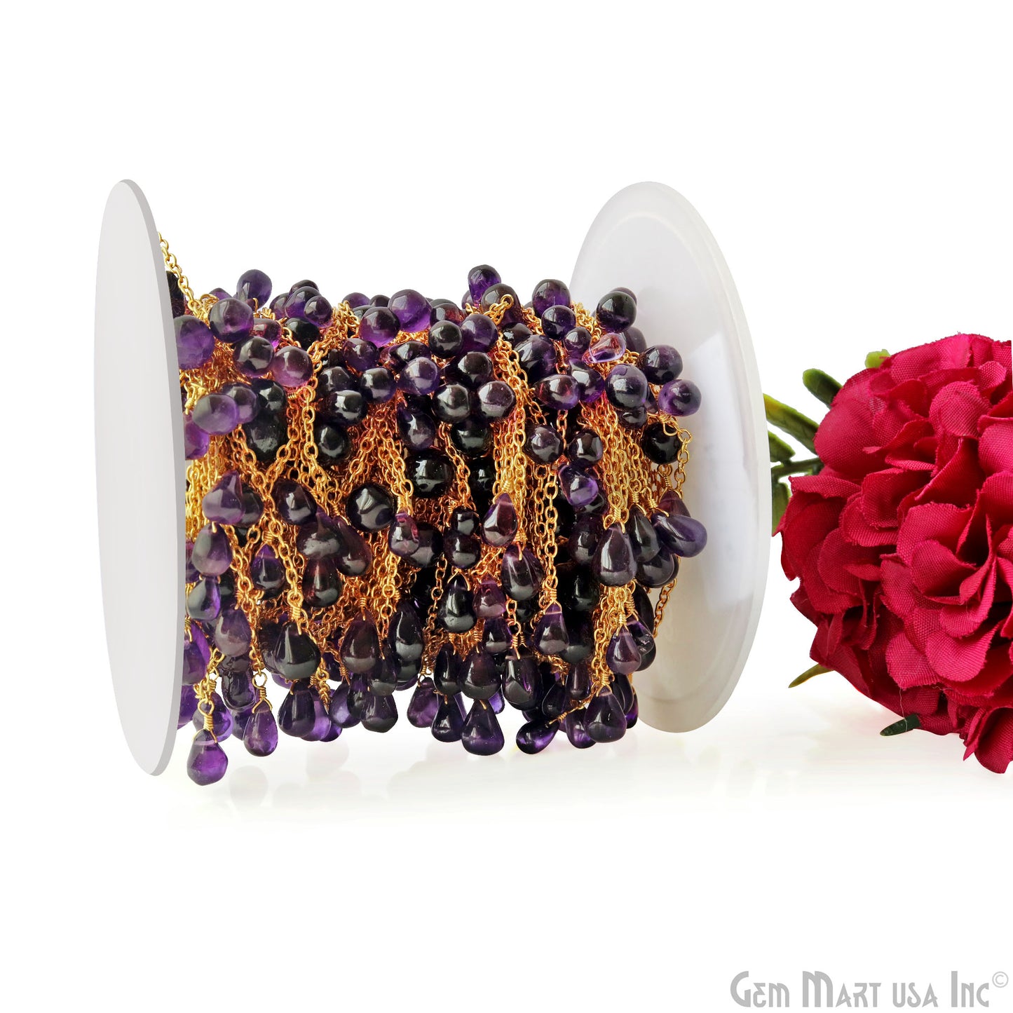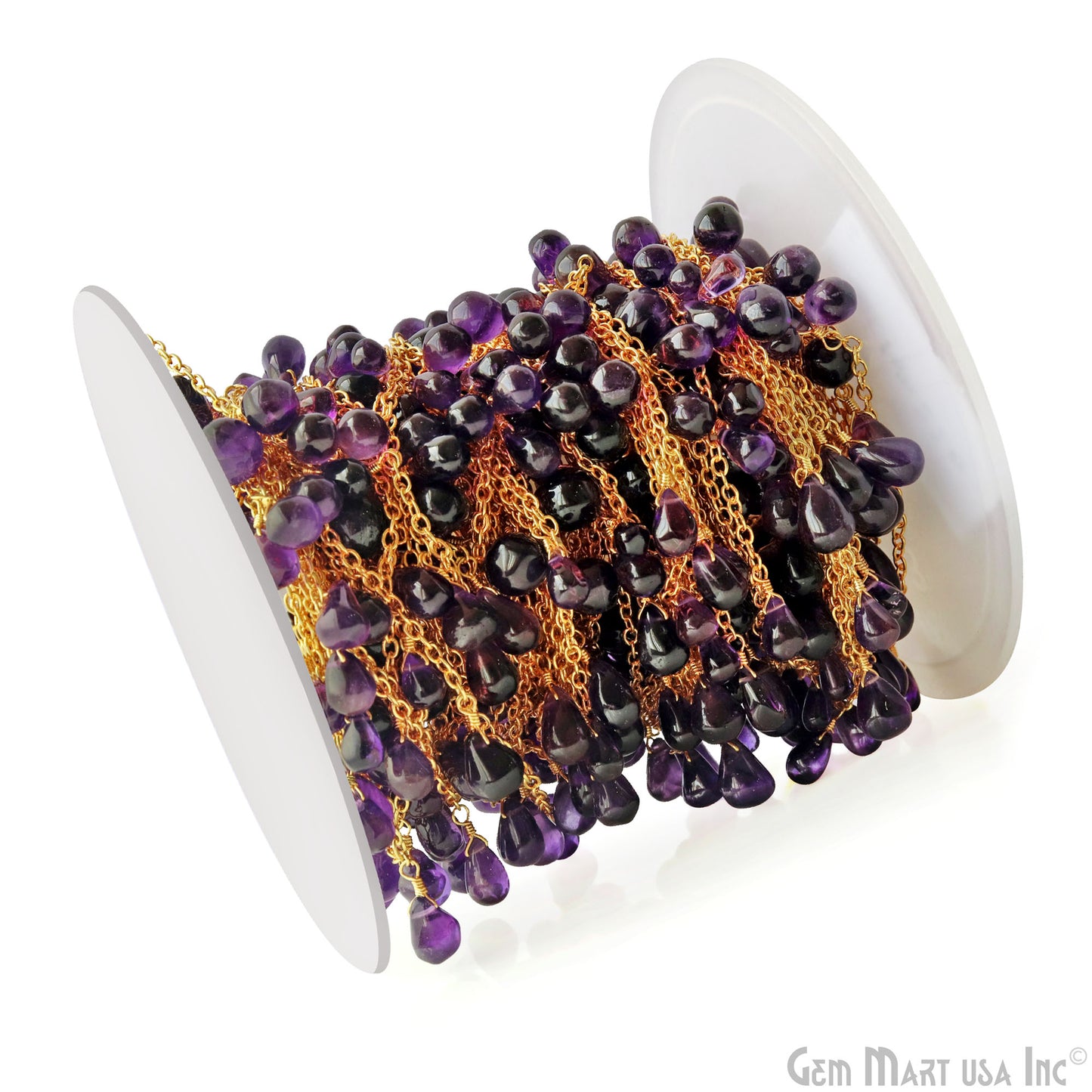 Amethyst Cabochon Drop Beads Gold Wire Wrapped Dangle Rosary Chain