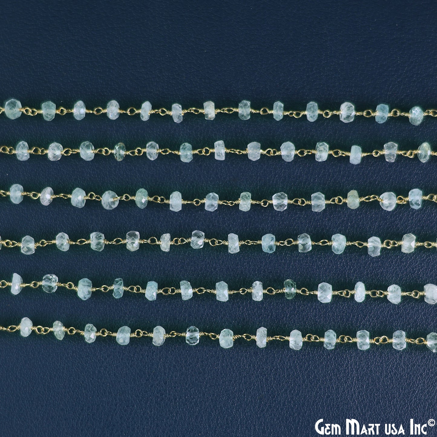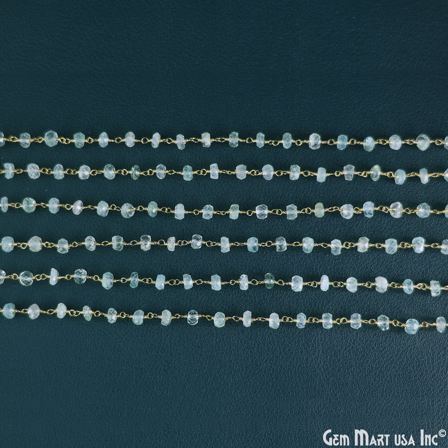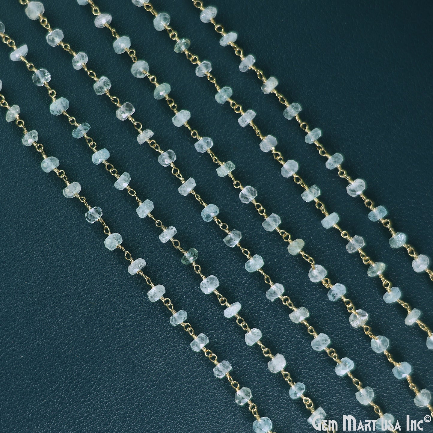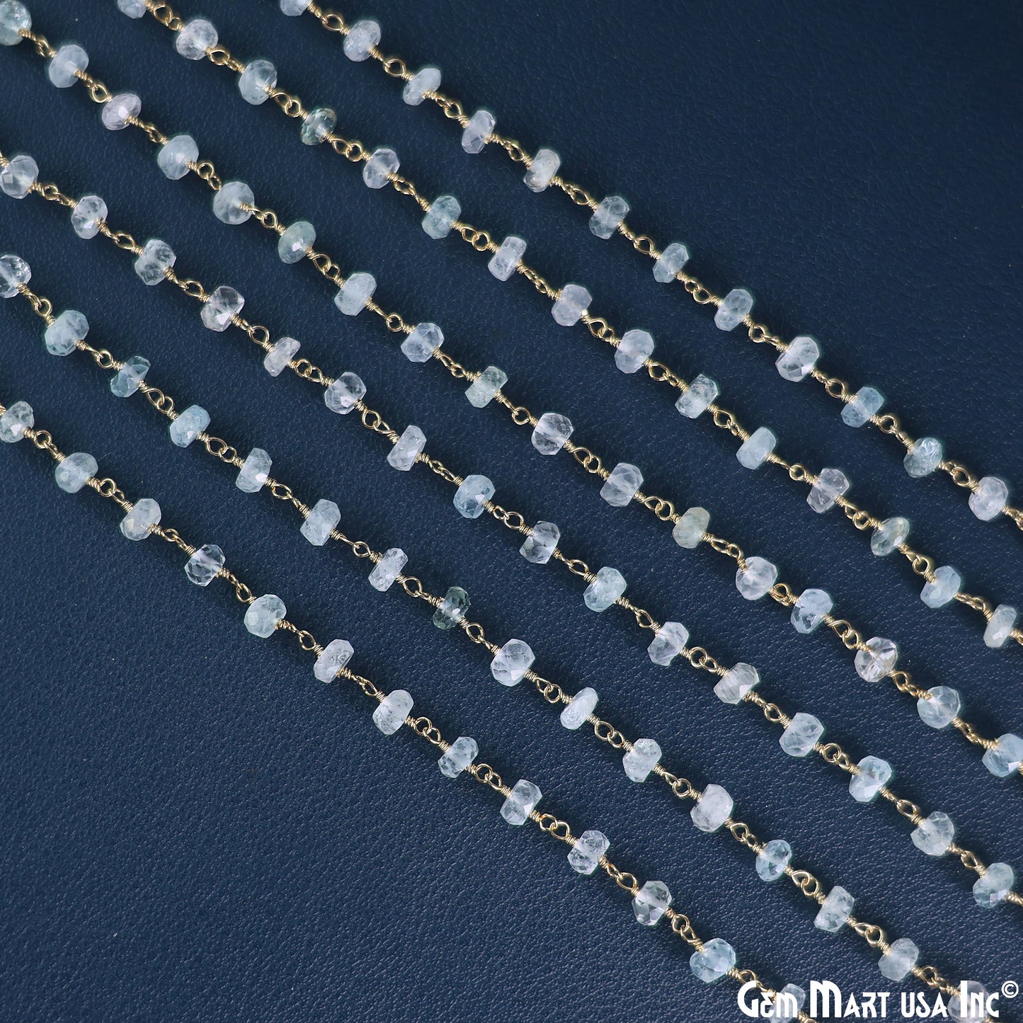 Aquamarine Faceted 5-6mm Gold Wire Wrapped Beads Rosary Chain