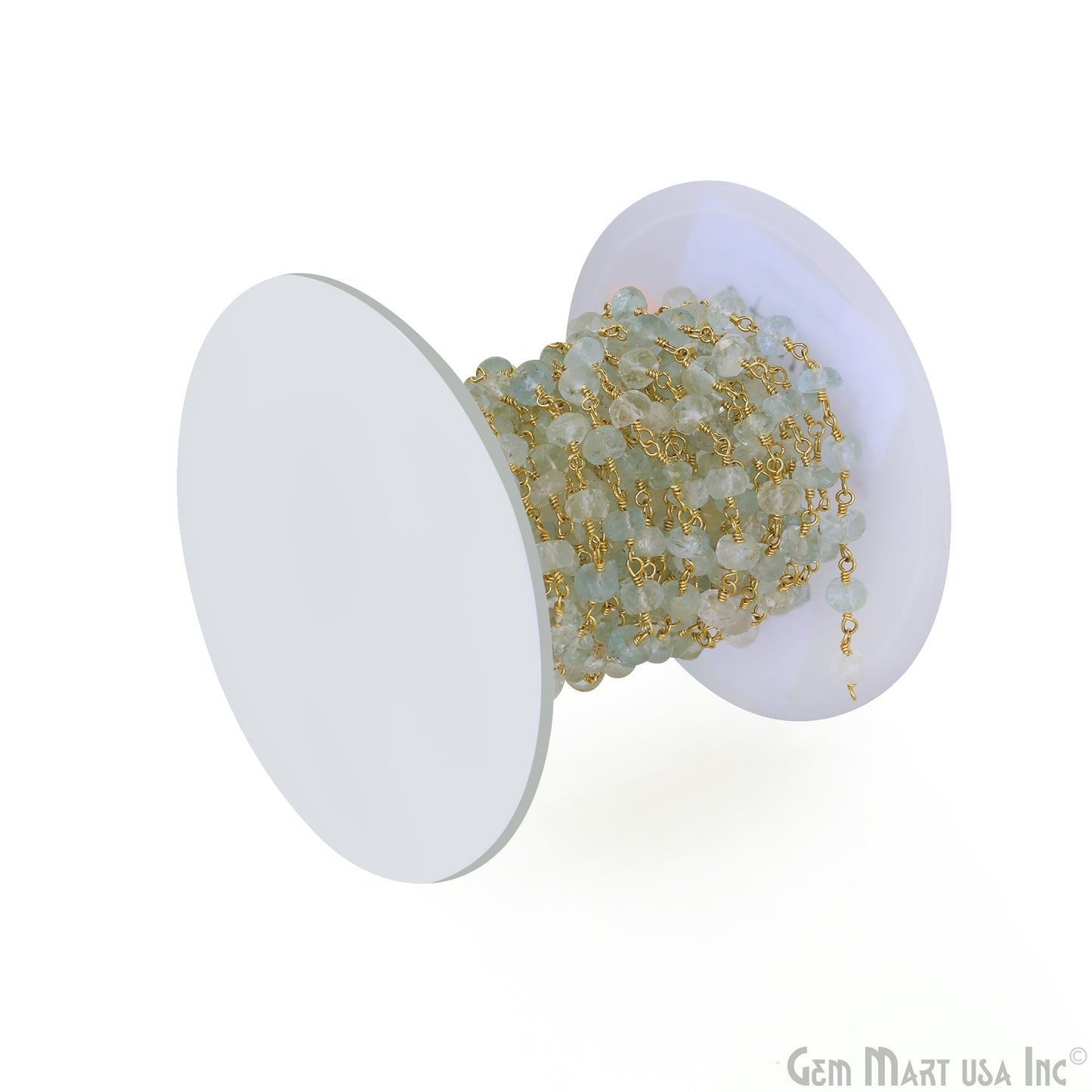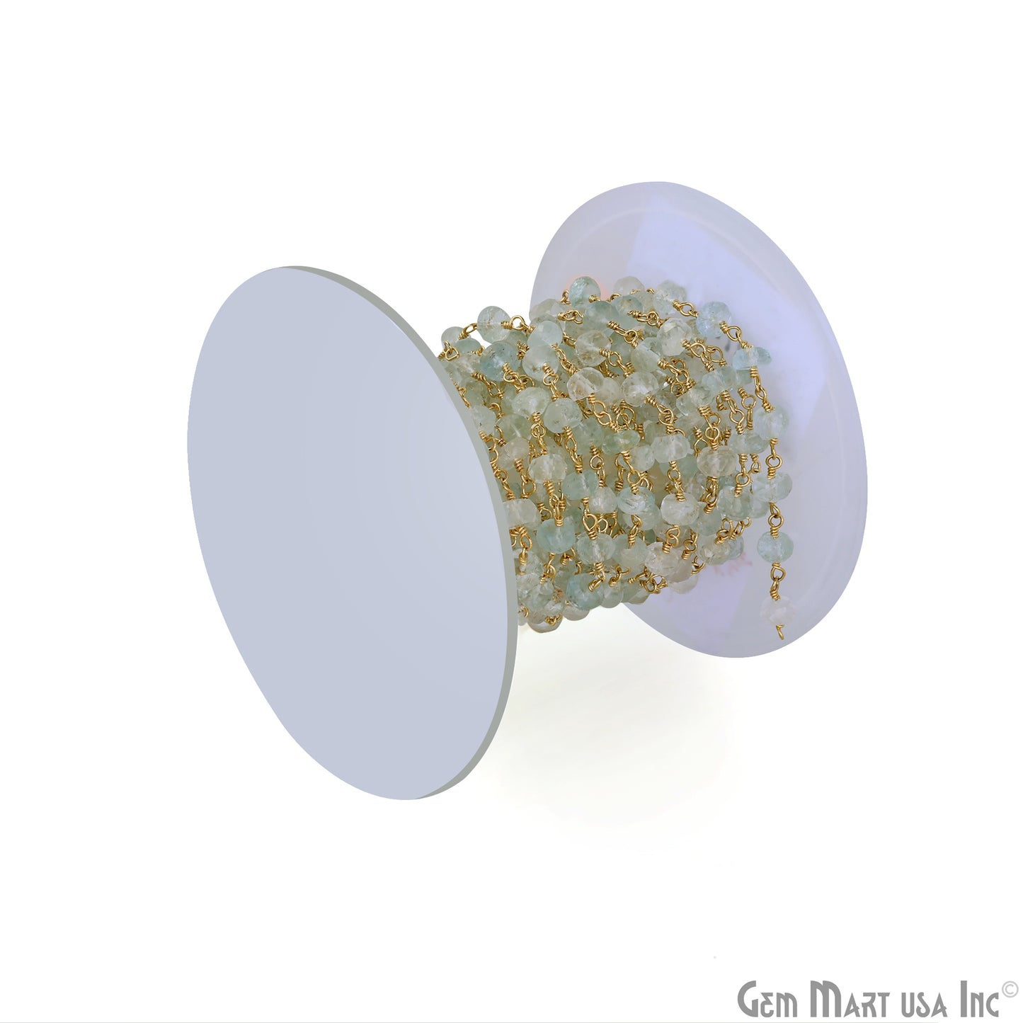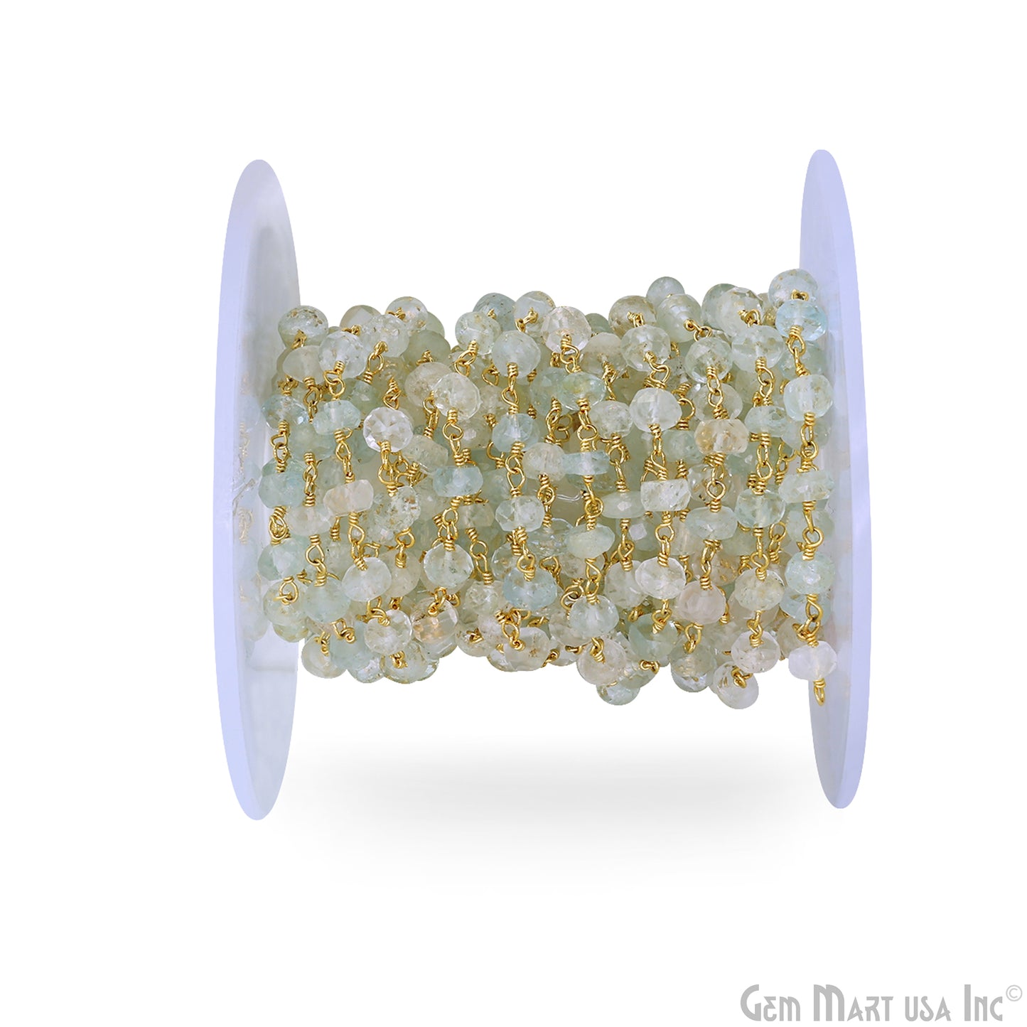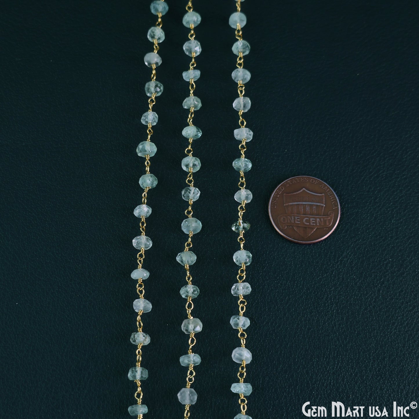 Aquamarine Faceted 5-6mm Gold Wire Wrapped Beads Rosary Chain
