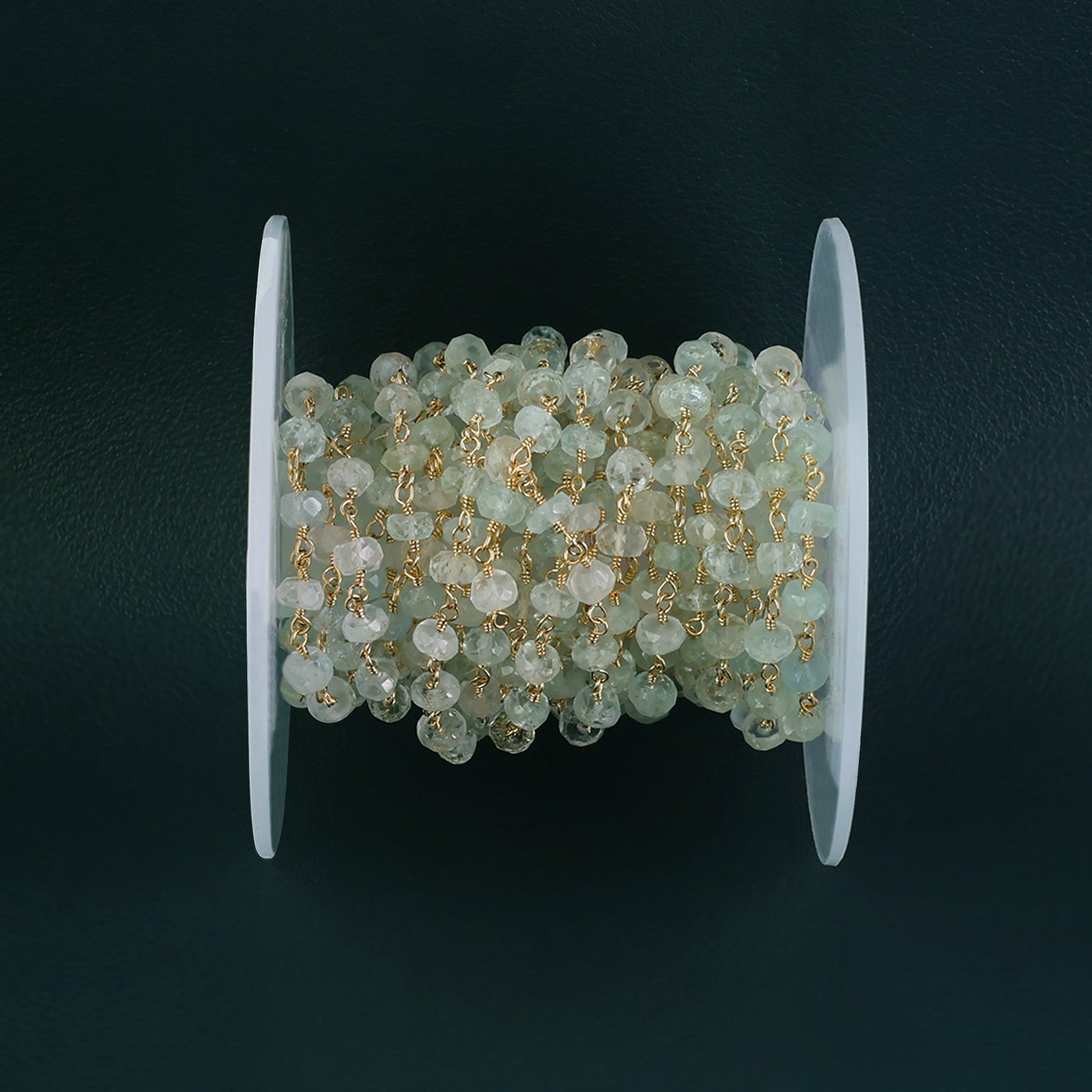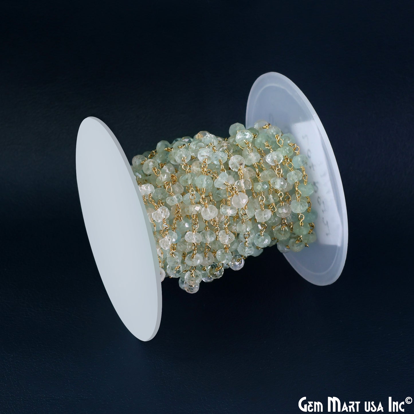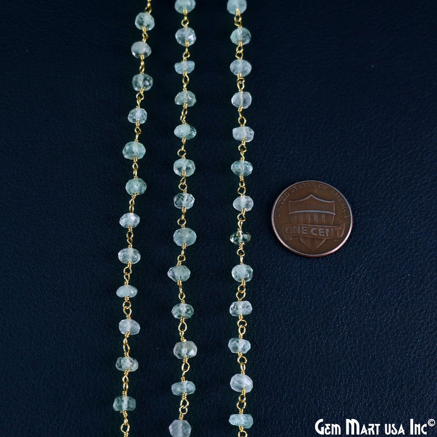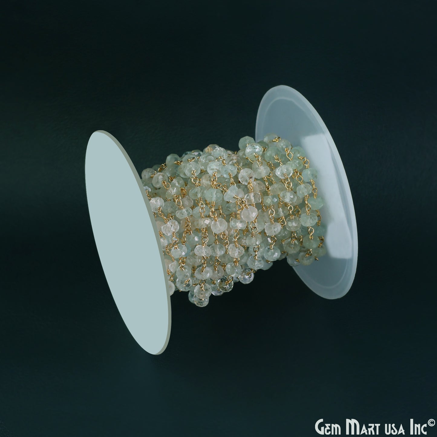 Aquamarine Faceted 5-6mm Gold Wire Wrapped Beads Rosary Chain
