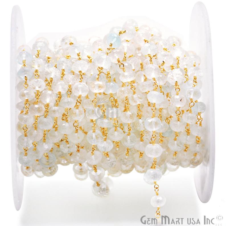 Aquamarine Gold Wire Wrapped Rondelle Faceted Bead Rosary Chain