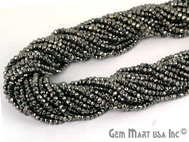 Black Pyrite Rondelle Beads, 12.5 Inch Gemstone Strands, Drilled Strung Nugget Beads, Faceted Round, 3-4mm