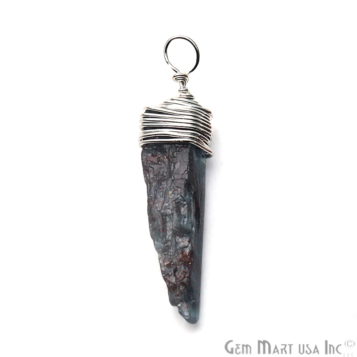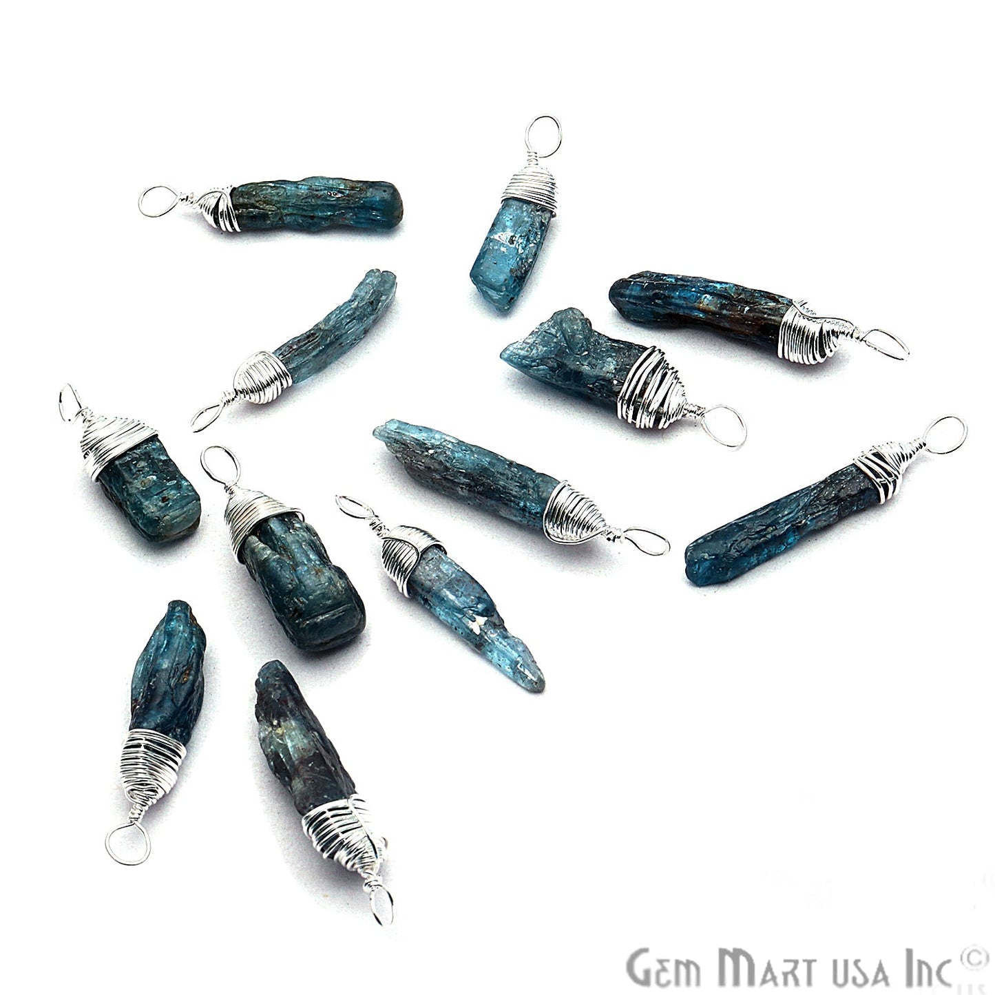 Blue Kyanite Silver Wire Wrapped 18x6mm Jewelry Making Rough Shape Single Bail Connector