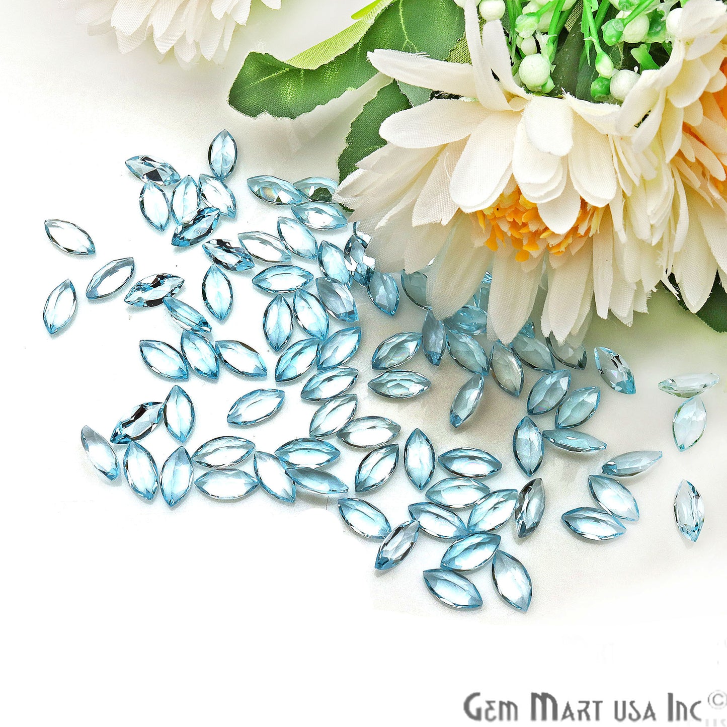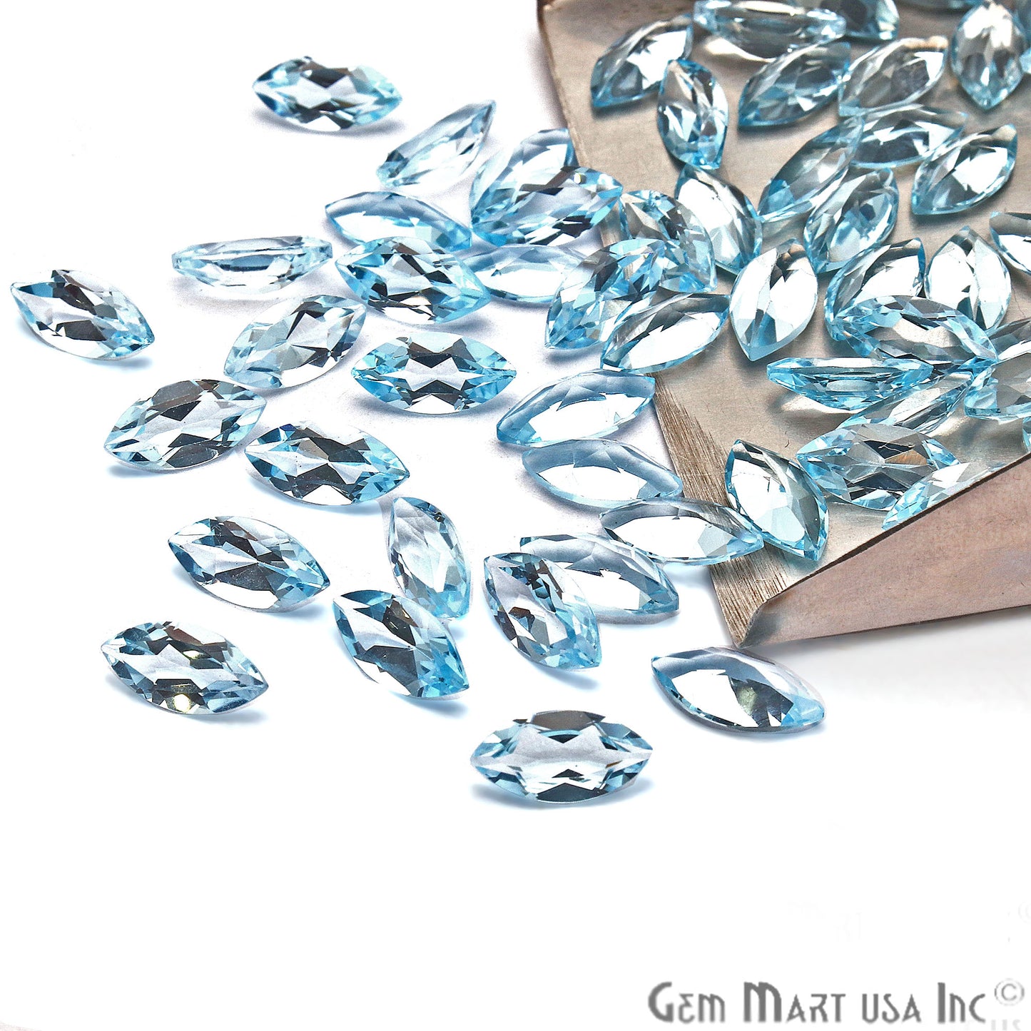 Blue Topaz Wholesale Gemstones, 100% Natural Semi-Precious Gems, Blue Faceted Loose Gems, 5x10mm, Marquise, 10 Carats