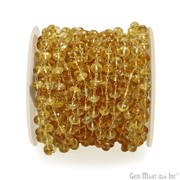 Citrine Faceted Beads 6-7mm Gold Wire Wrapped Beaded Rosary Chain