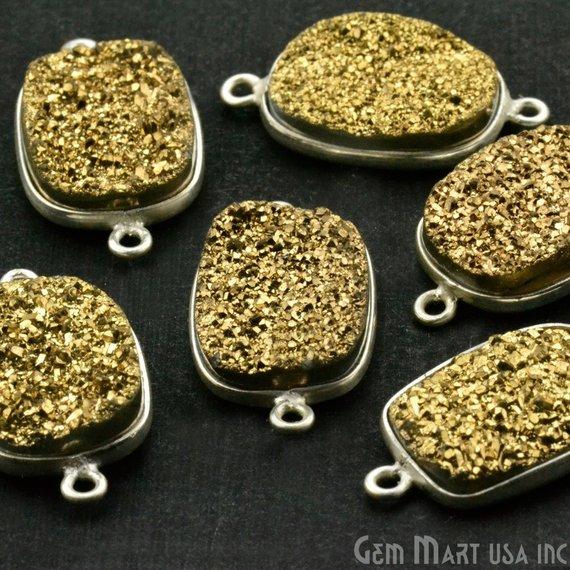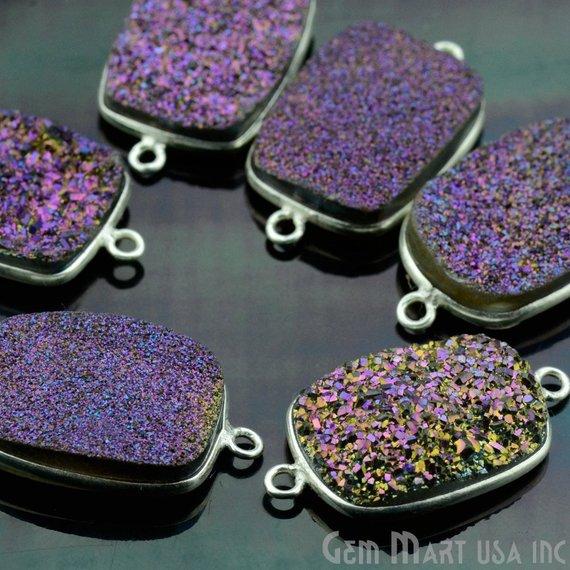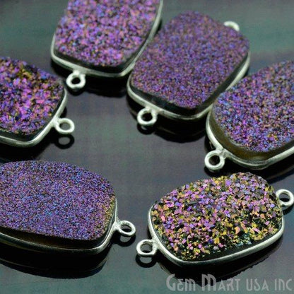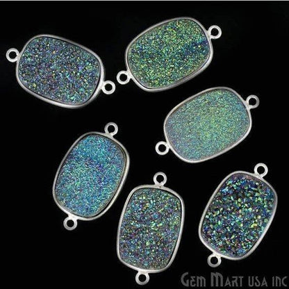 Clearance Titanium Druzy 13x18mm Octagon Silver Double Bail Gemstone Connector