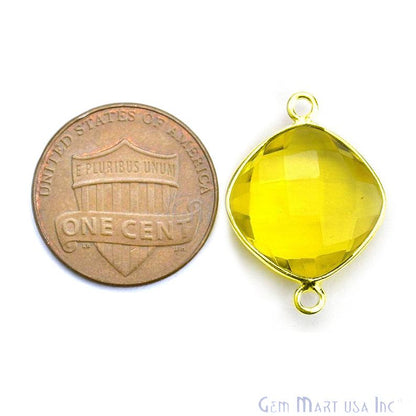 Cushion 14mm Double Bail Gold Bezel Gemstone Connector