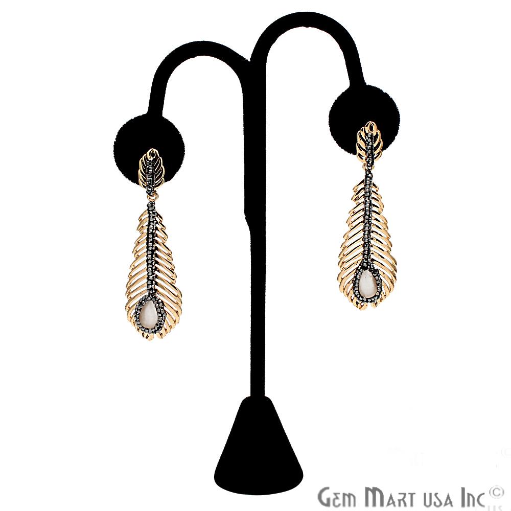 CZ Feather Monalisa Earring, Gold Plated, Dangle Earrings, Cubic Zircon Earrings (CHPR-50100)