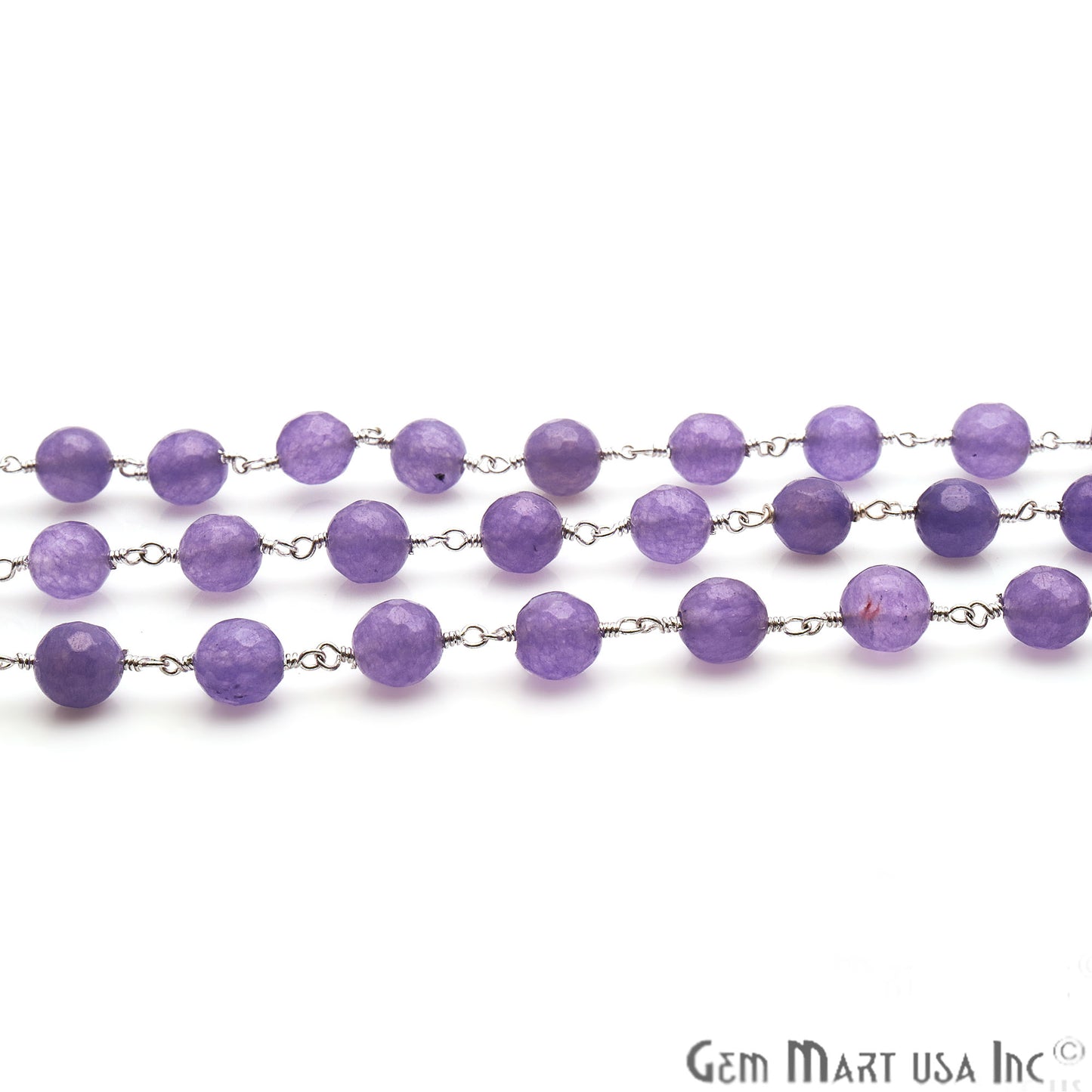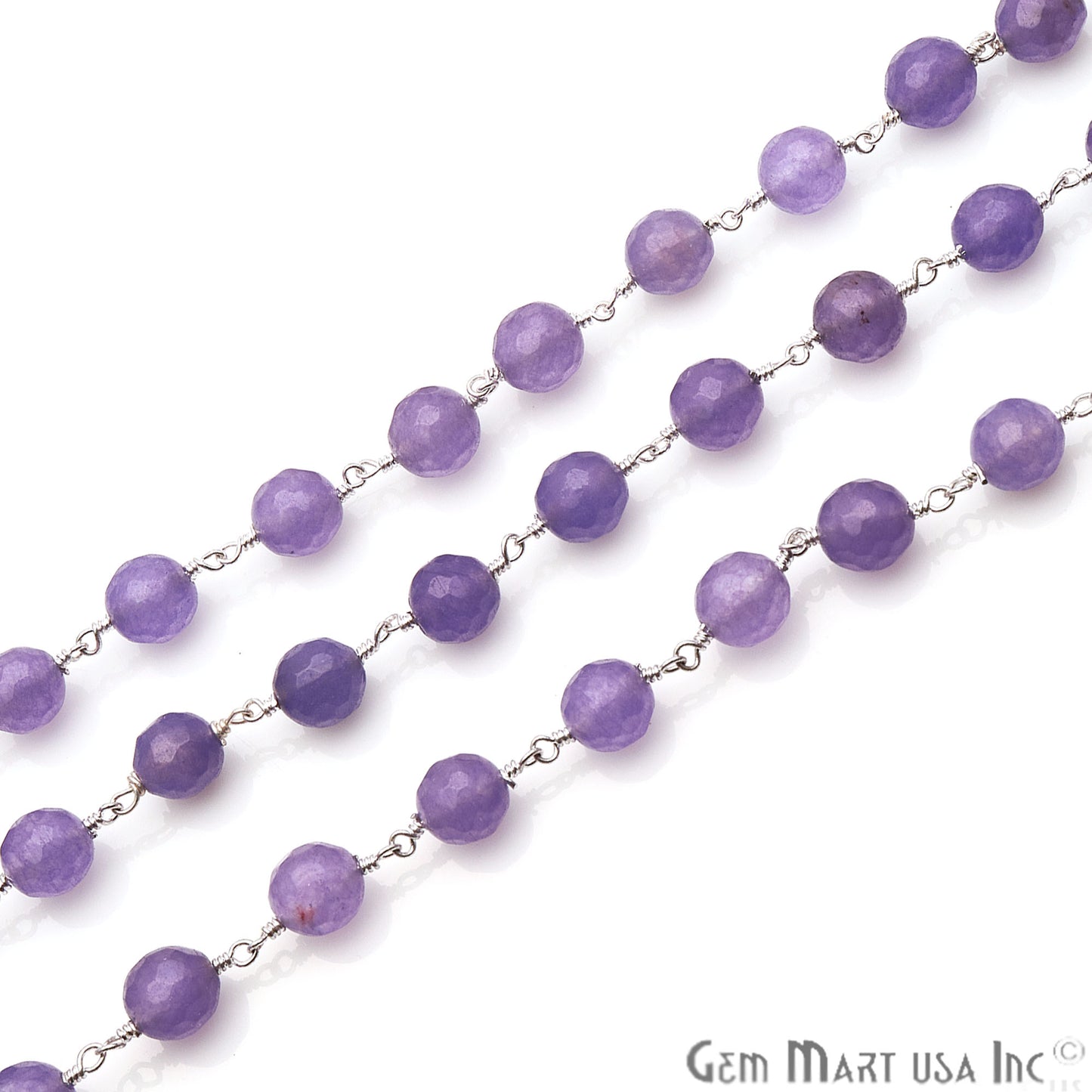Dark Lavender Jade Faceted 8mm Silver Plated Wire Wrapped Rosary Chain