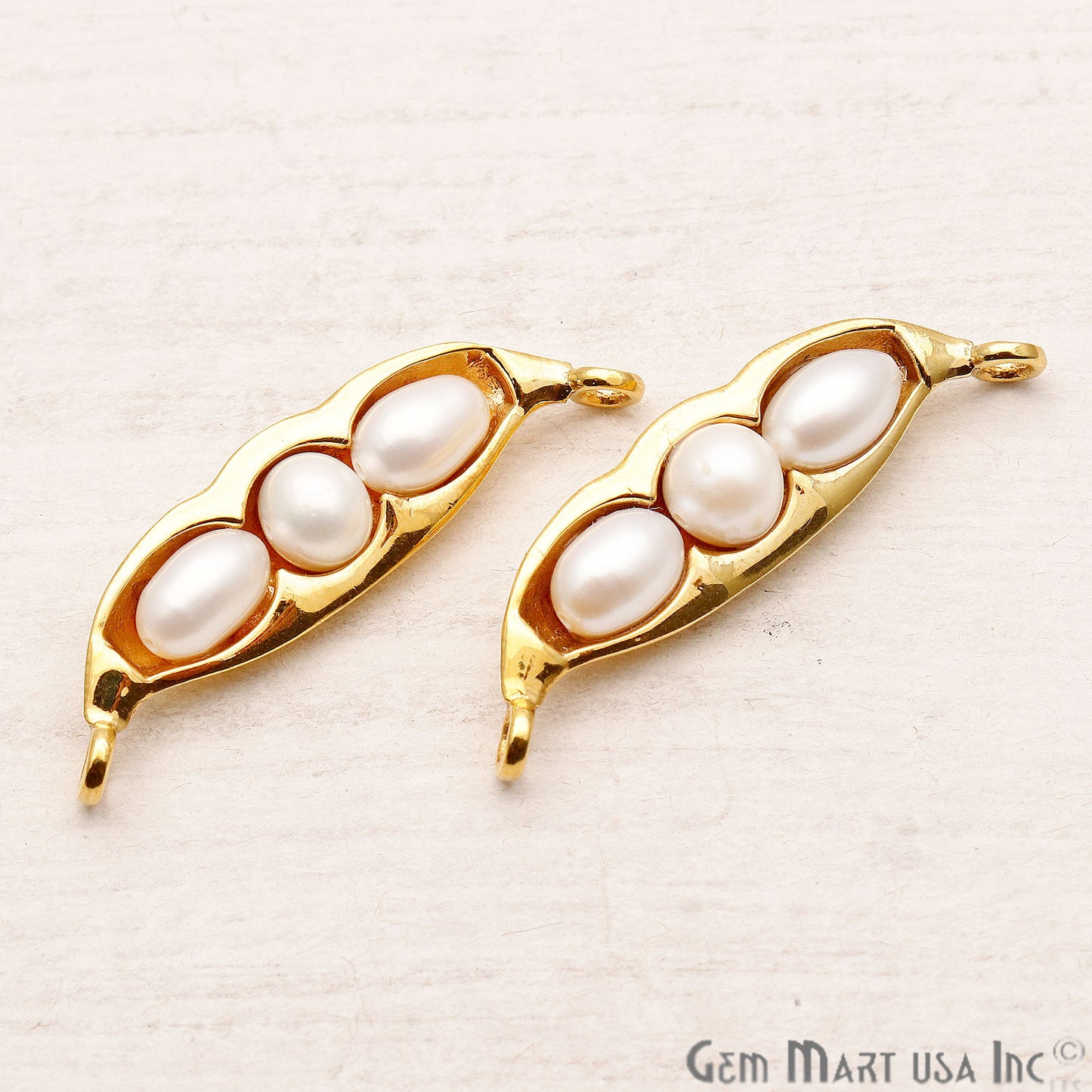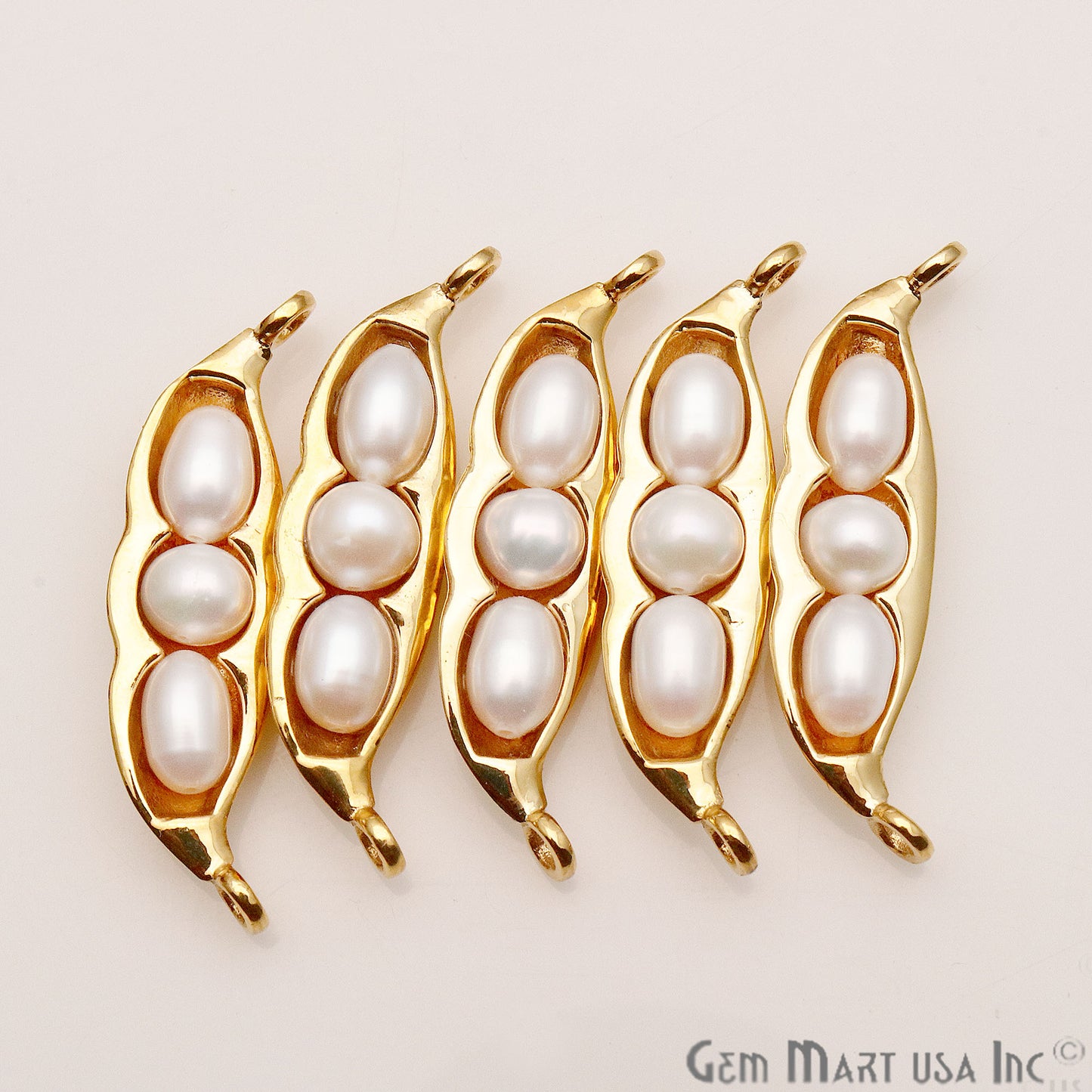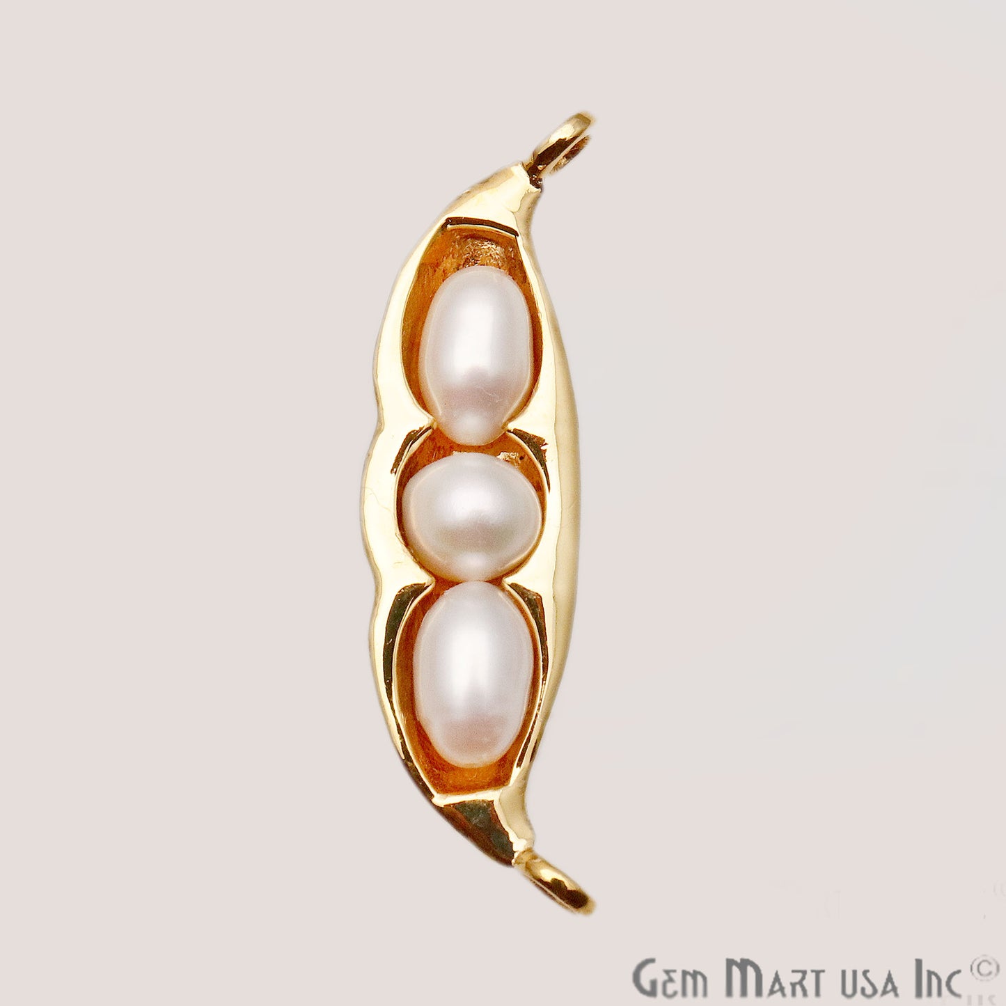Pearl Pea Pod Shaped Pendant Connector, Gold plated Double Bail Pendant 38X10mm