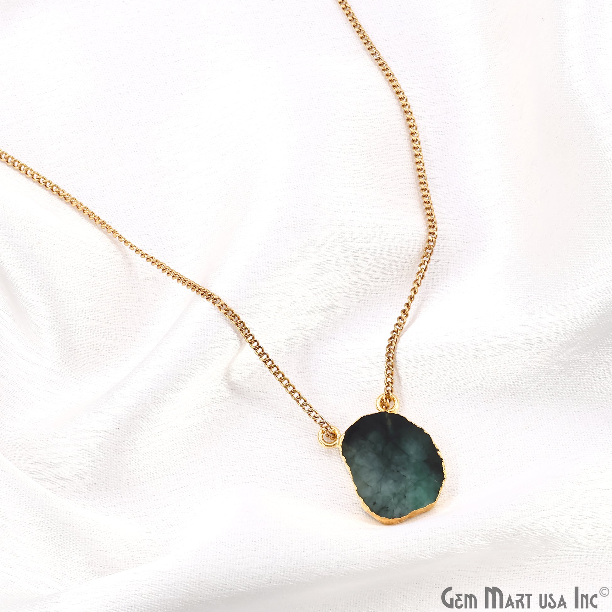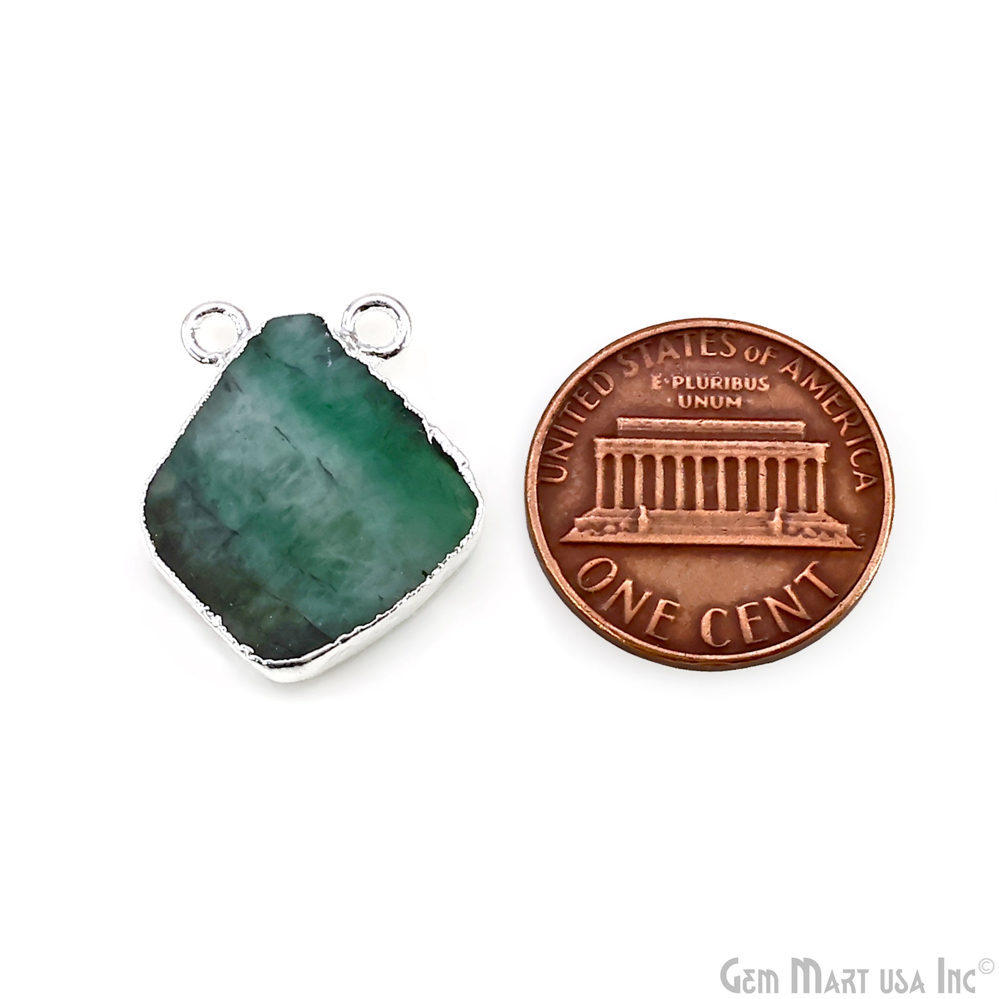 Emerald Free Form 17x13mm Electroplated Gemstone Cat Bail Connector