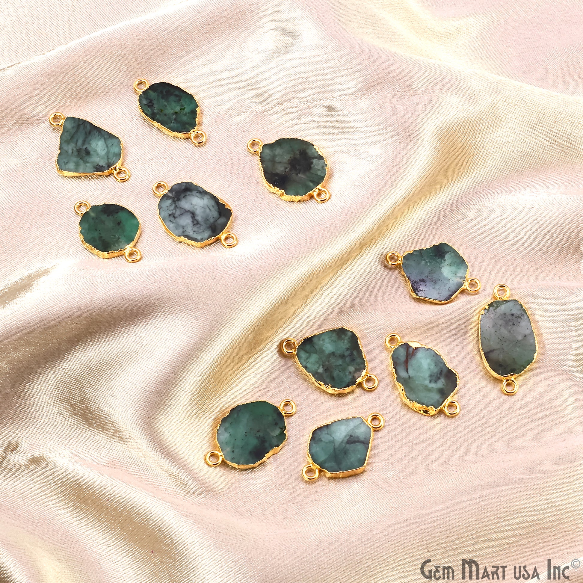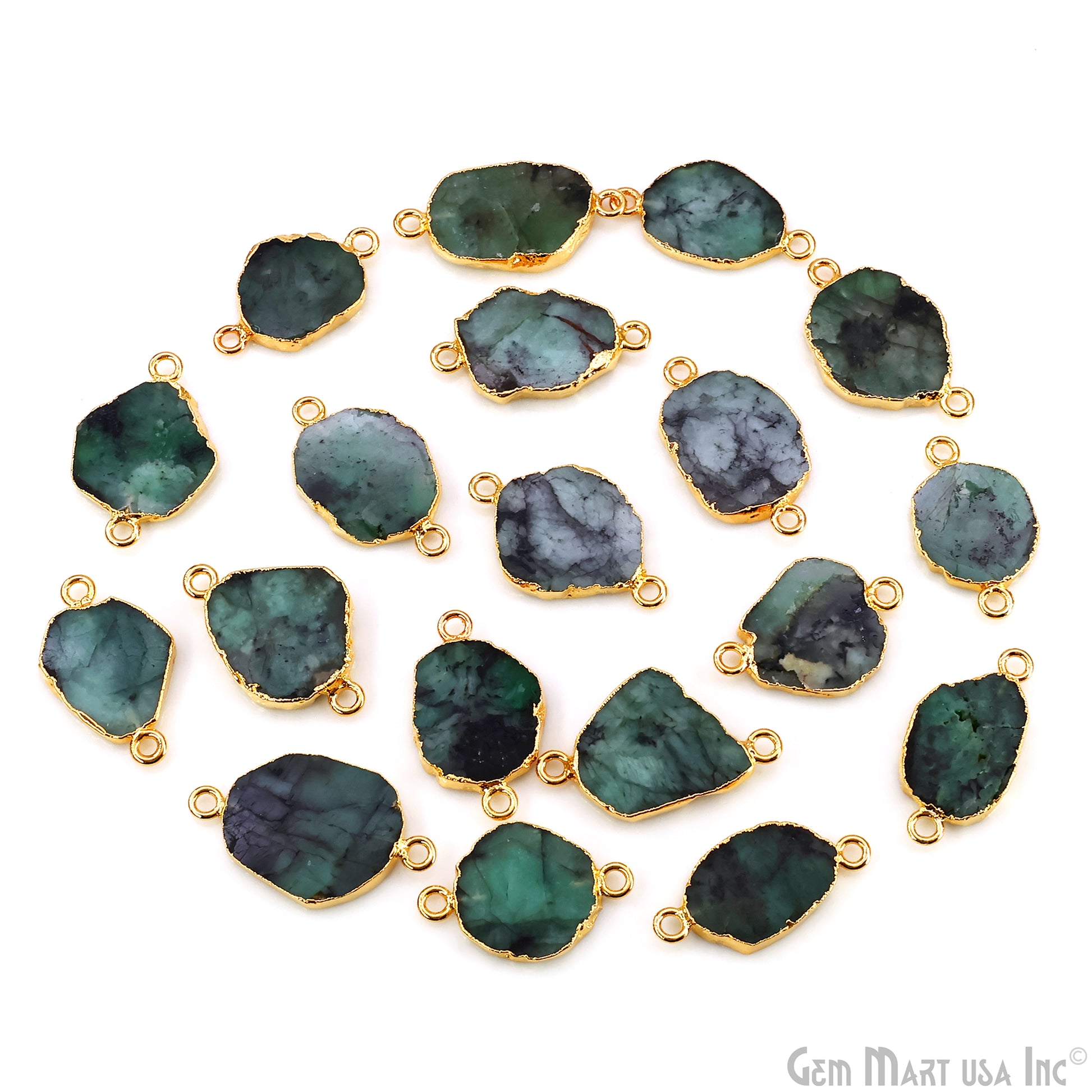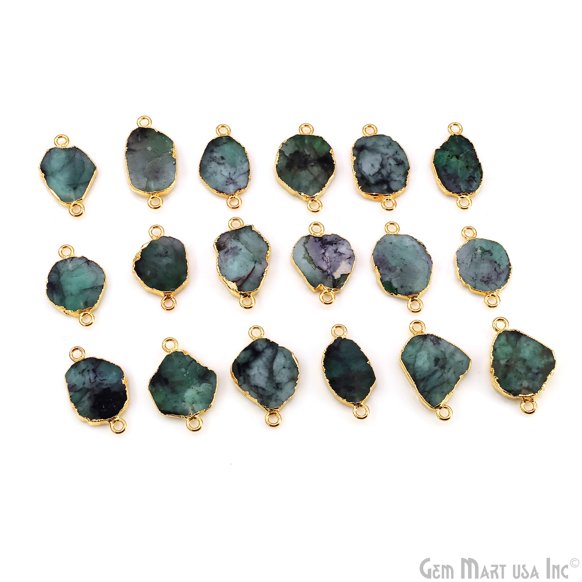 Emerald Free Form 23x13mm Electroplated Gemstone Double Bail Connector