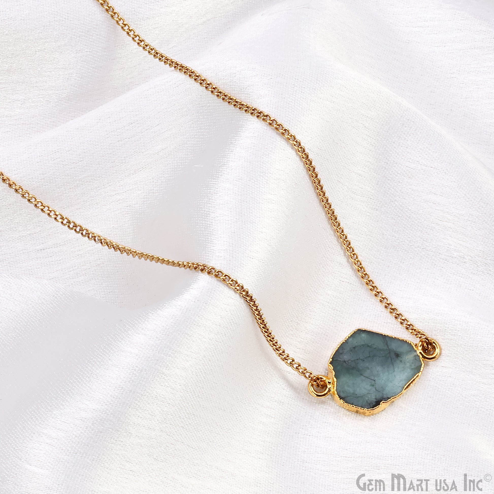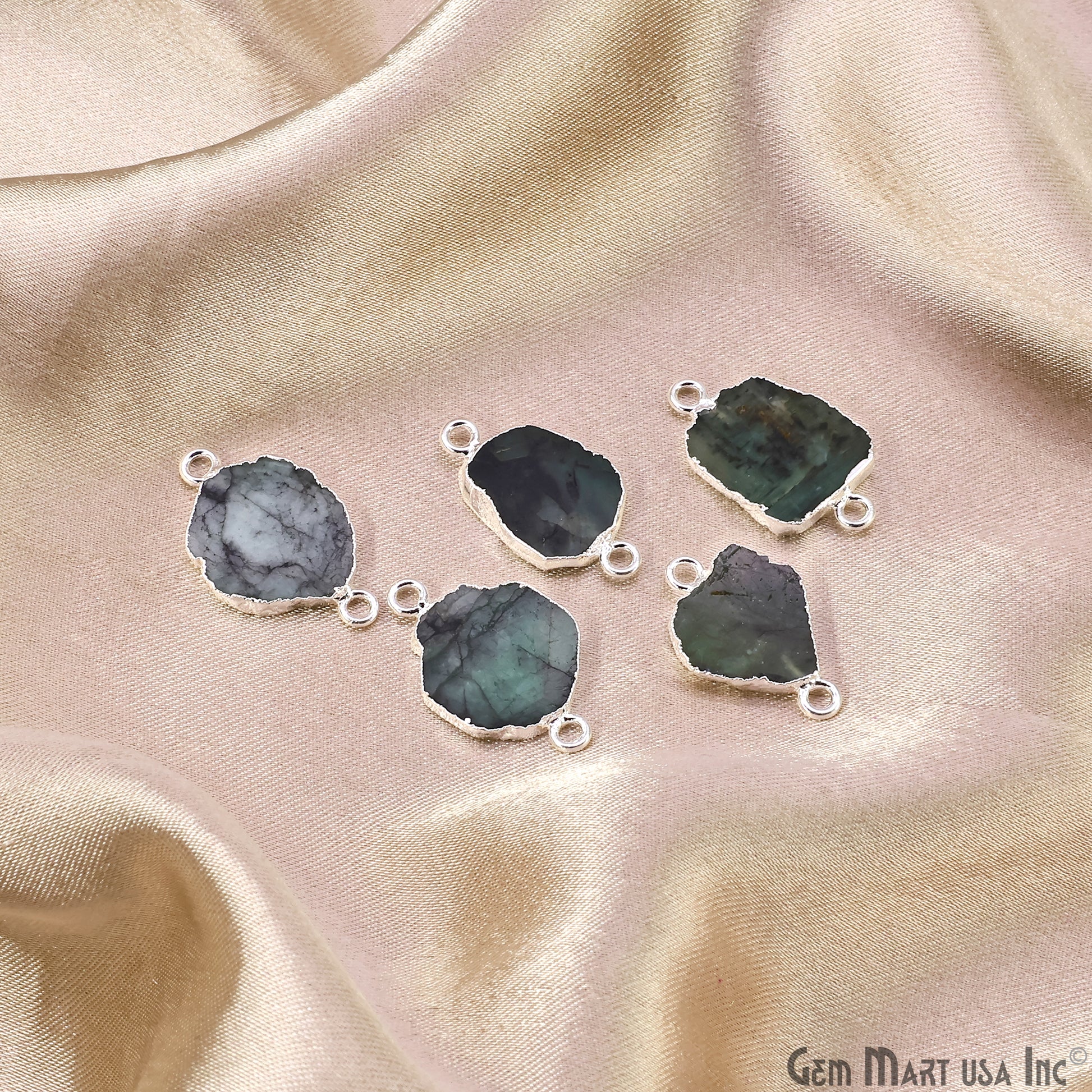 A jewelry piece that makes a statement with its unique appearance is this rough Emerald gemstone connector.