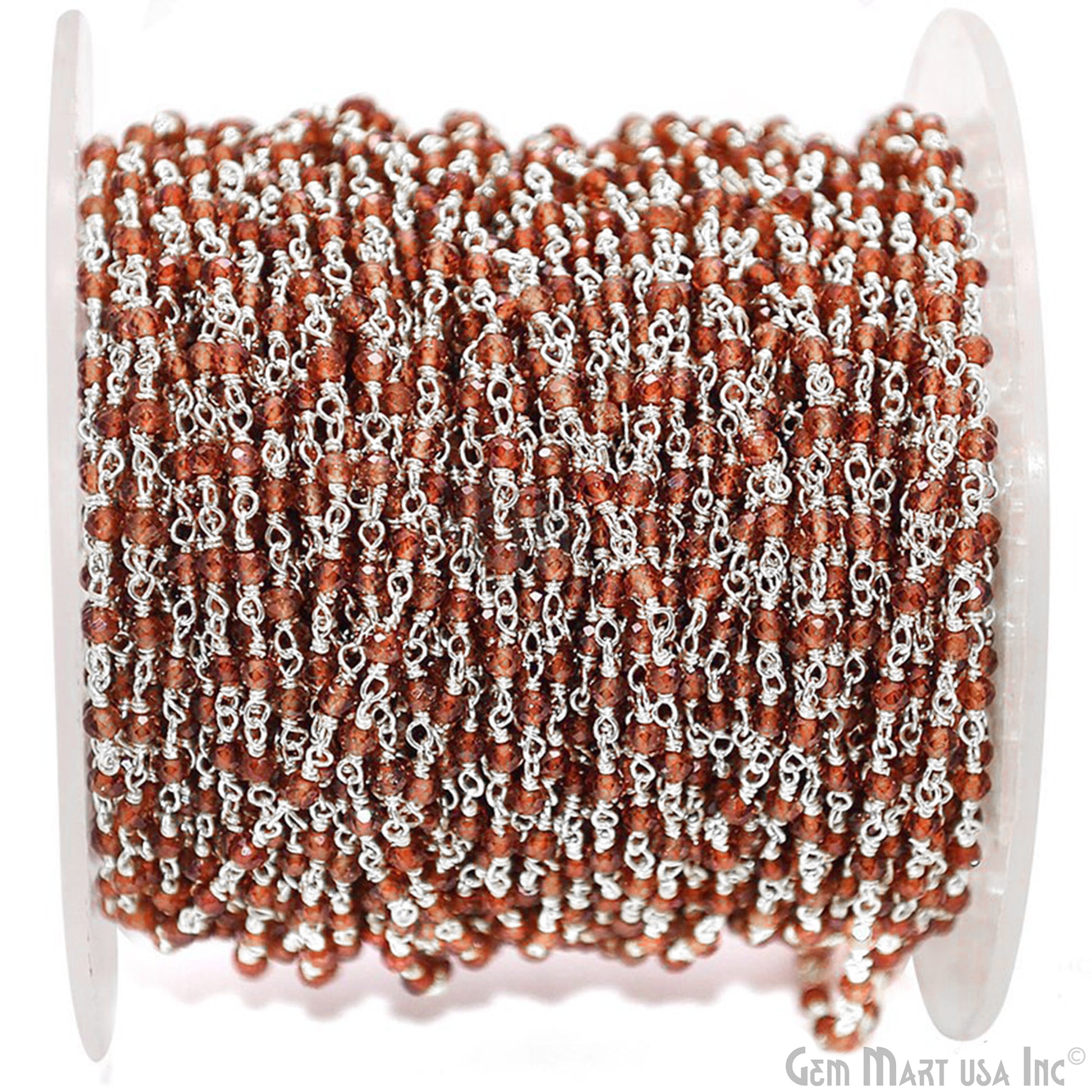 Garnet Silver Plated Wire Wrapped Gemstone Beads Rosary Chain