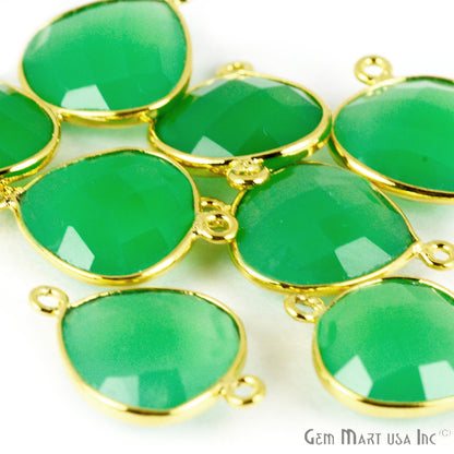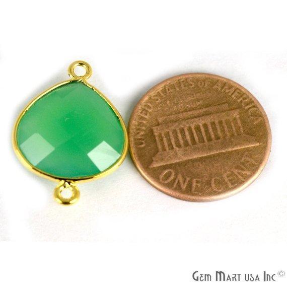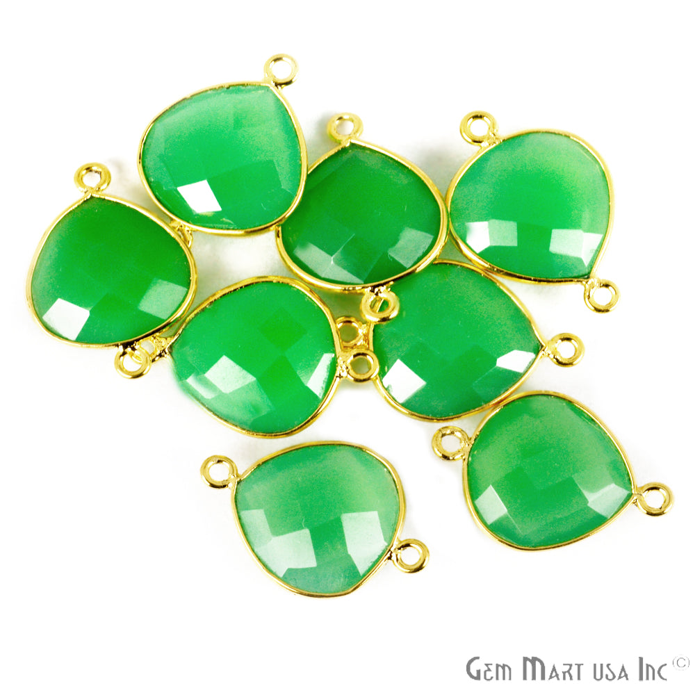 Clearance Sale Chrysoprase Chalcedony Heart 14mm Double Bail Gemstone Gold Bezel Connector