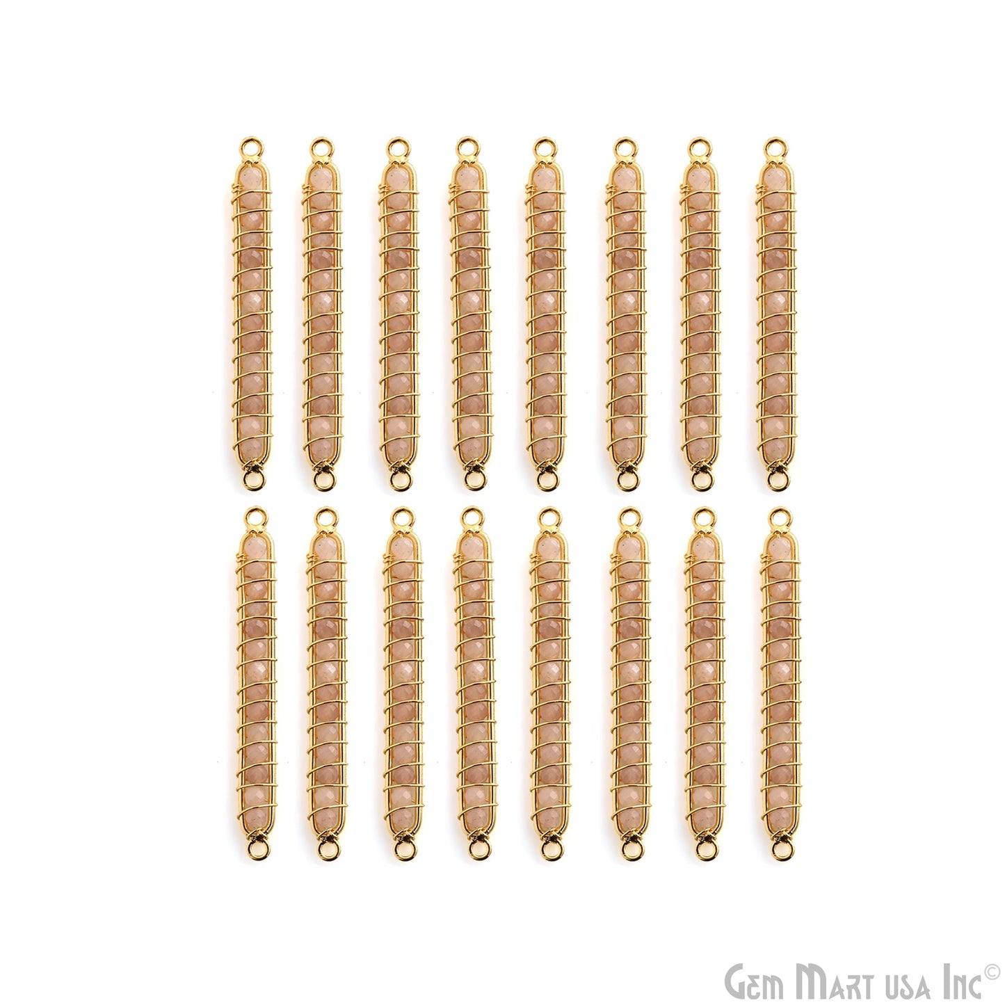 Gold Wire Wrapped Bar Beaded Gemstone Connector (Pick Your Bail)
