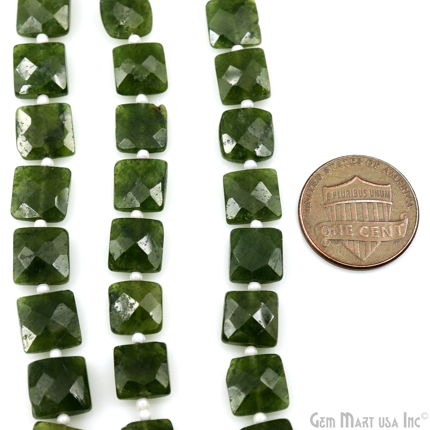 Green Apatite Square Beads, 7.5 Inch Gemstone Strands, Drilled Strung Briolette Beads, Square Shape, 9mm