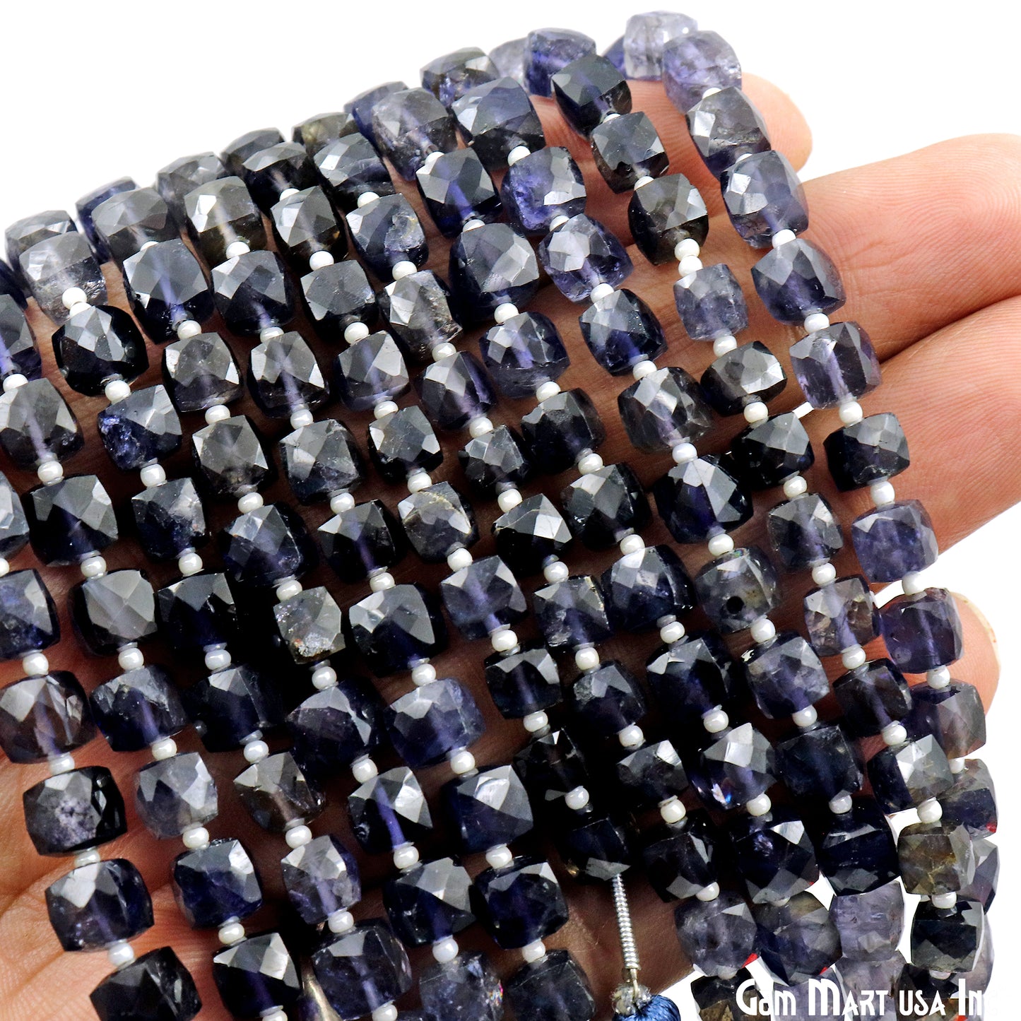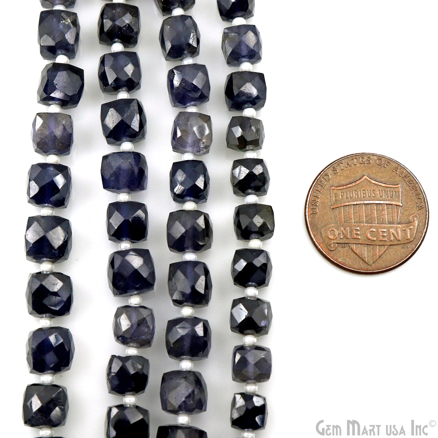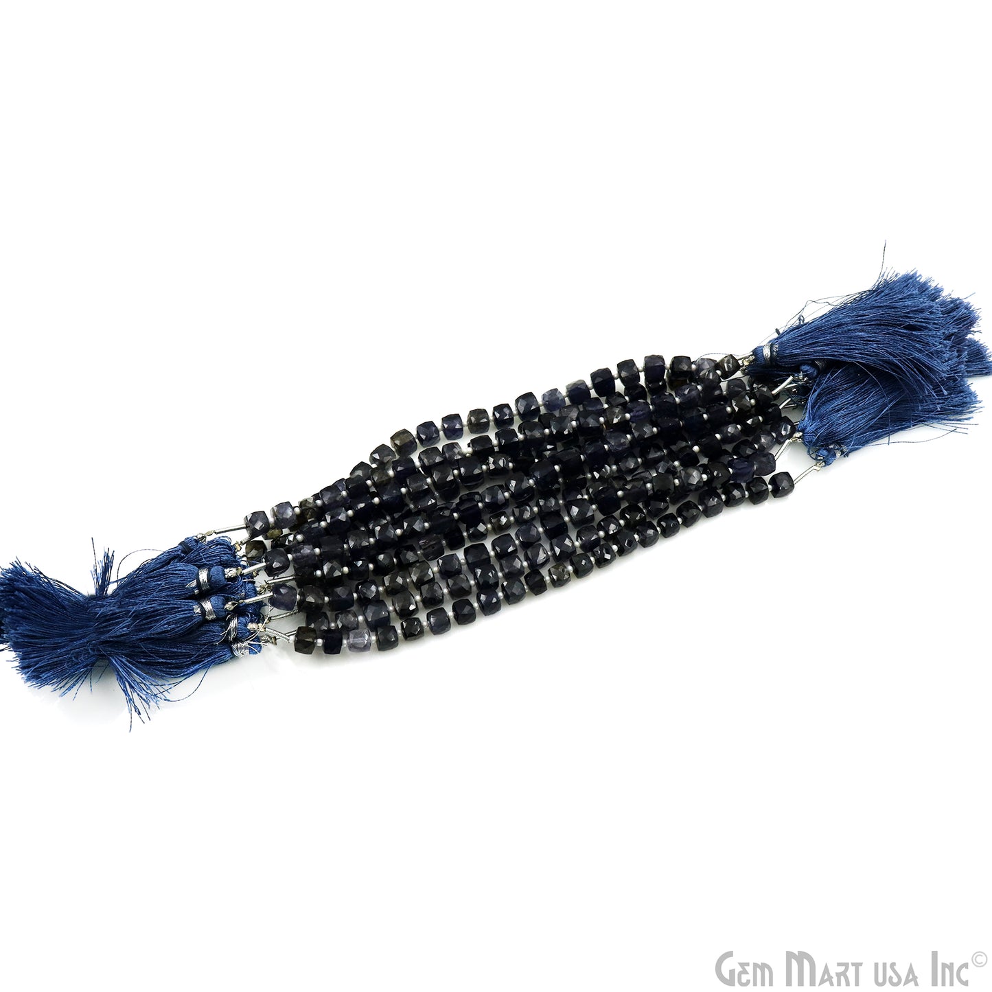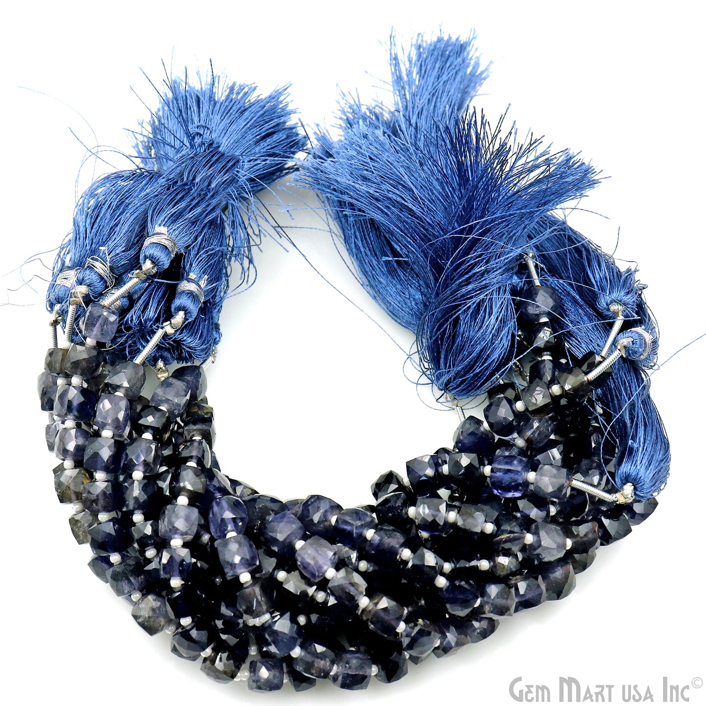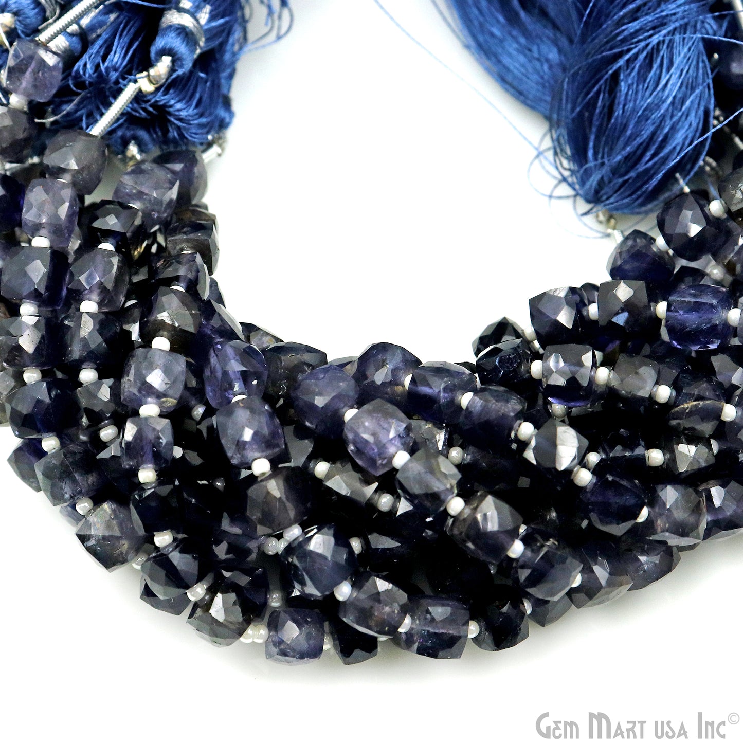 Iolite Cube Beads, 7 Inch Gemstone Strands, Drilled Strung Briolette Beads, Cube Shape, 6-7mm