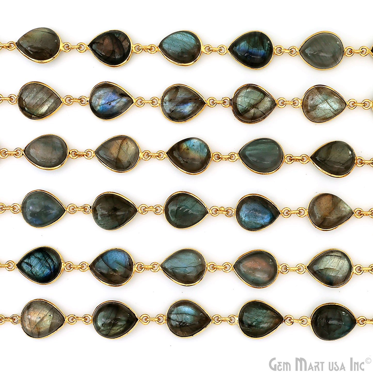 Labradorite 10x12mm Pears Gold Plated Bezel Cabochon Continuous Connector Chain