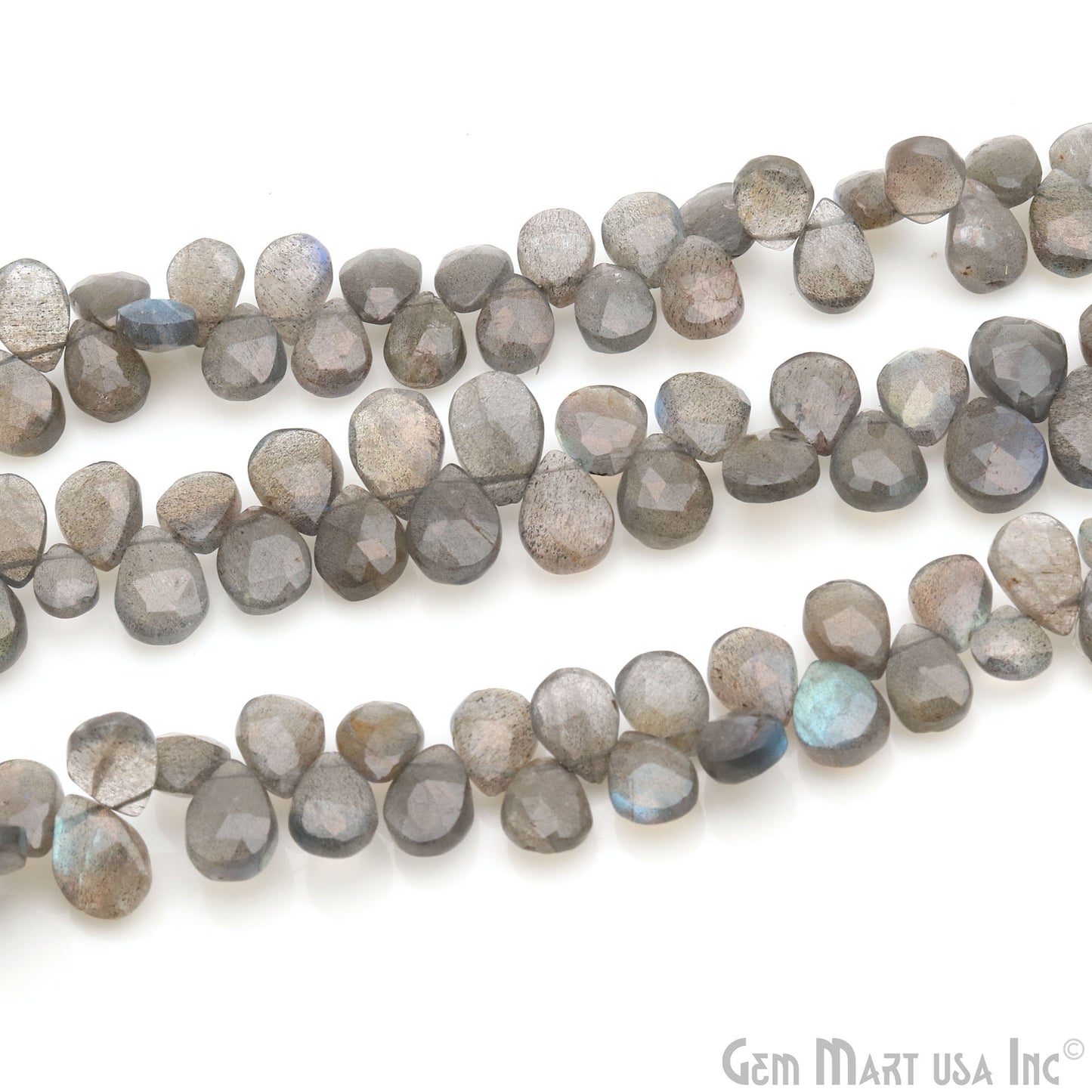 Labradorite Pears Beads, 8 Inch Gemstone Strands, Drilled Strung Briolette Beads, Pears Shape, 7x5mm