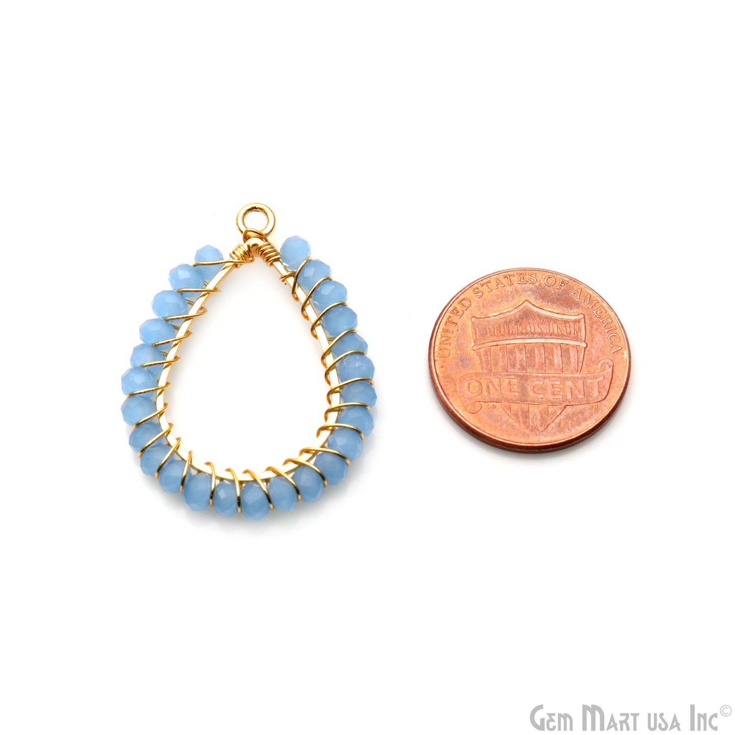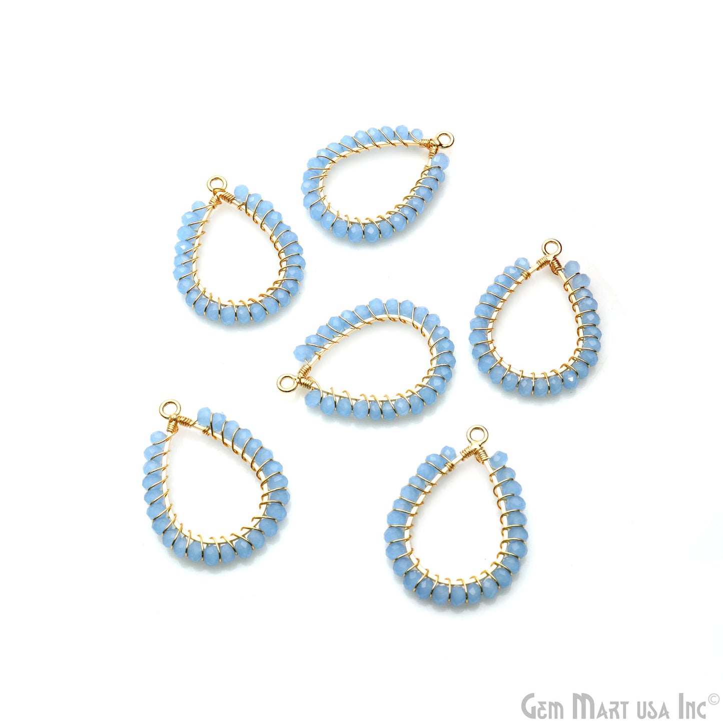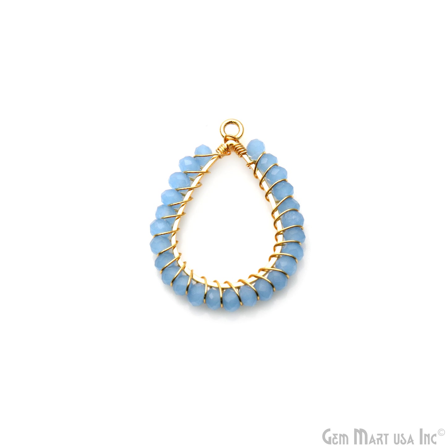 Light Blue Chalcedony Pear Shape 32x24mm Gold Wire Wrapped Single Bail Connector
