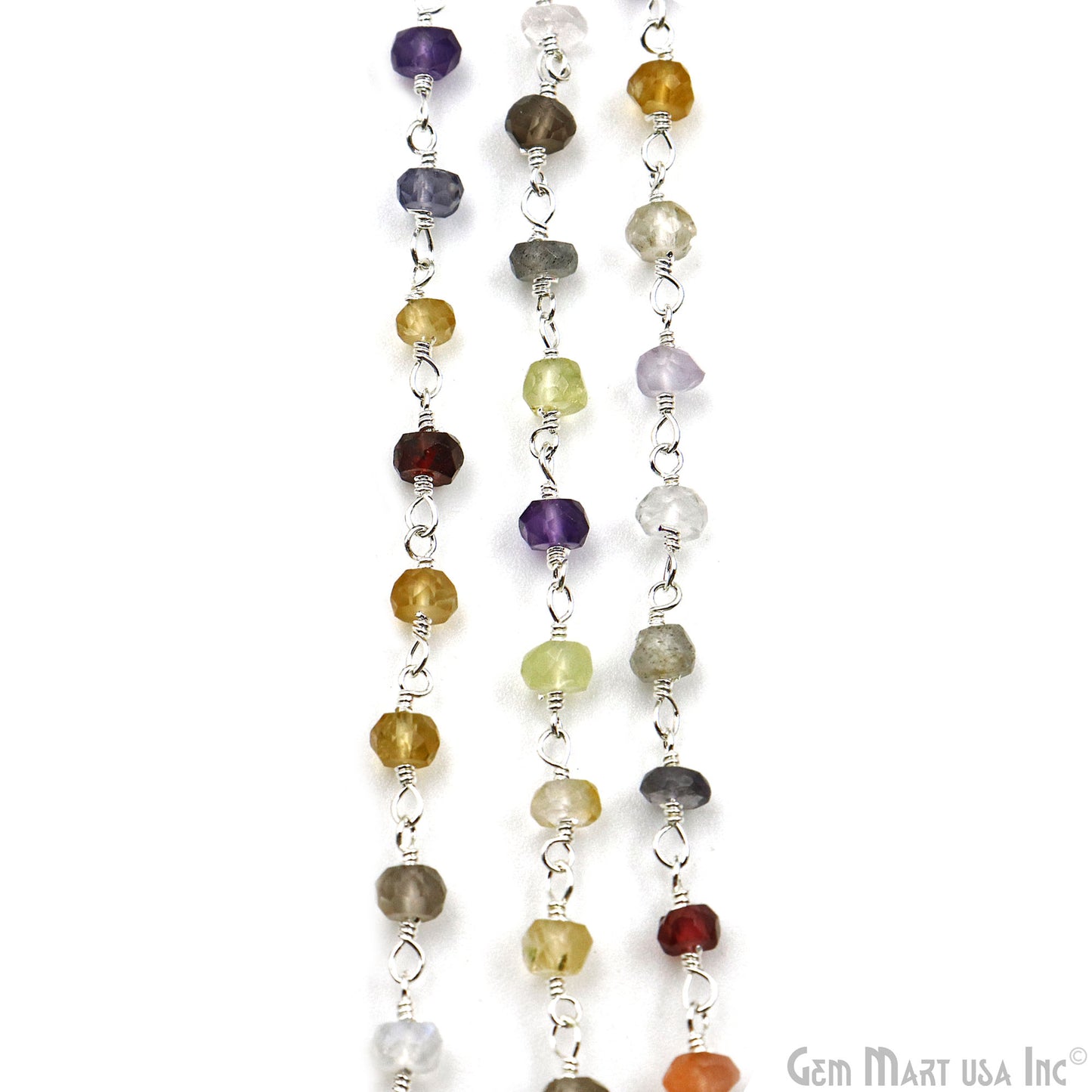 Multi Color Cubic Zirconia Faceted Beads 3-3.5mm Silver Plated Gemstone Rosary Chain