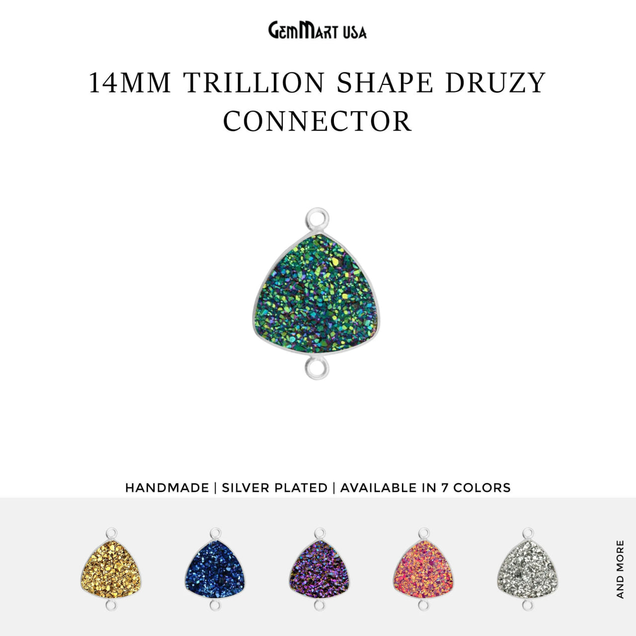 Clearance Natural Titanium Druzy 14mm Trillion Silver Plated Double Bail Bezel Gemstone Connector