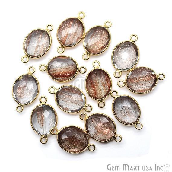 Oval 10x12mm Double Bail Gold Bezel Gemstone Connector