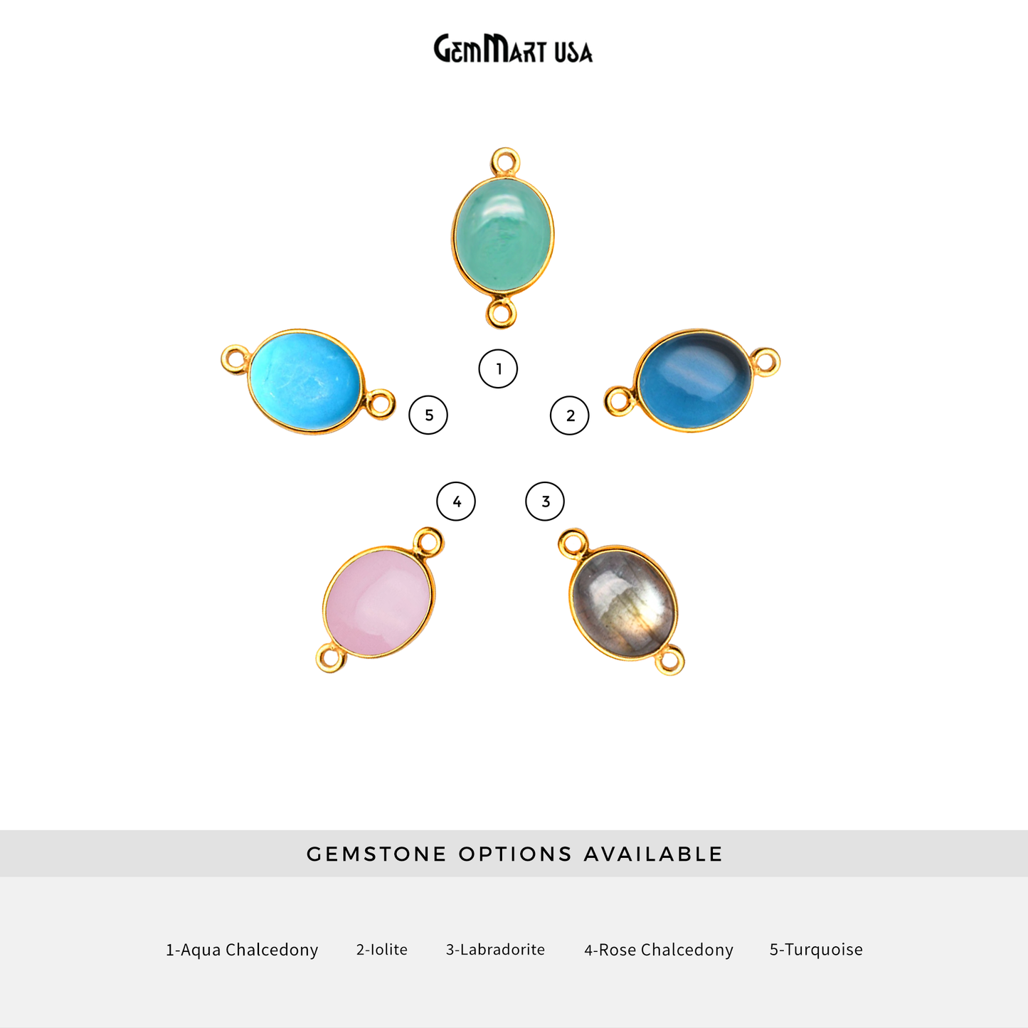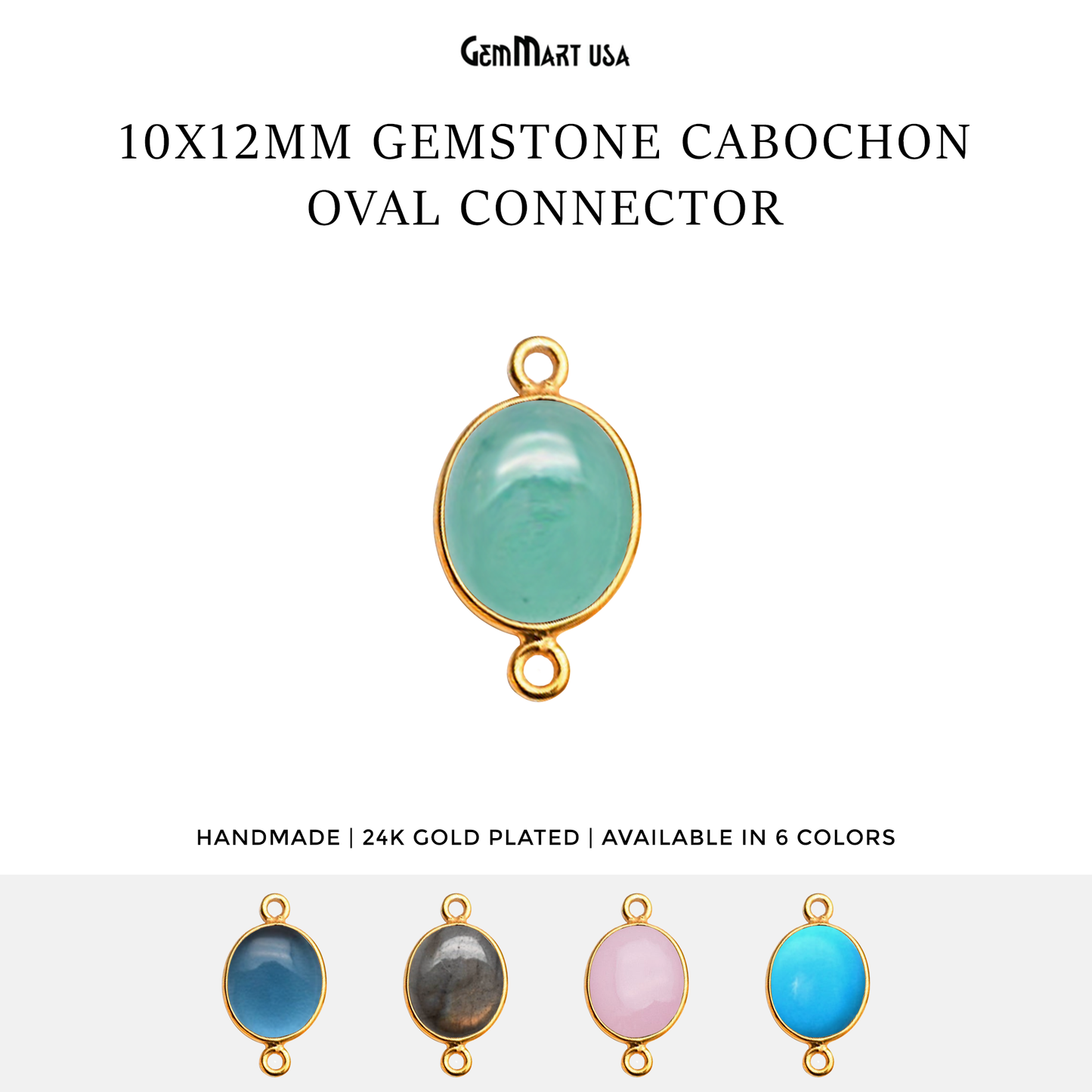 Oval 10x12mm Double Bail Gold Bezel Gemstone Cabochon Connector