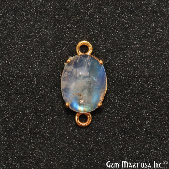 Rainbow Moonstone Cabochon Oval 7x9mm Prong Gold Plated Double Bail Connector