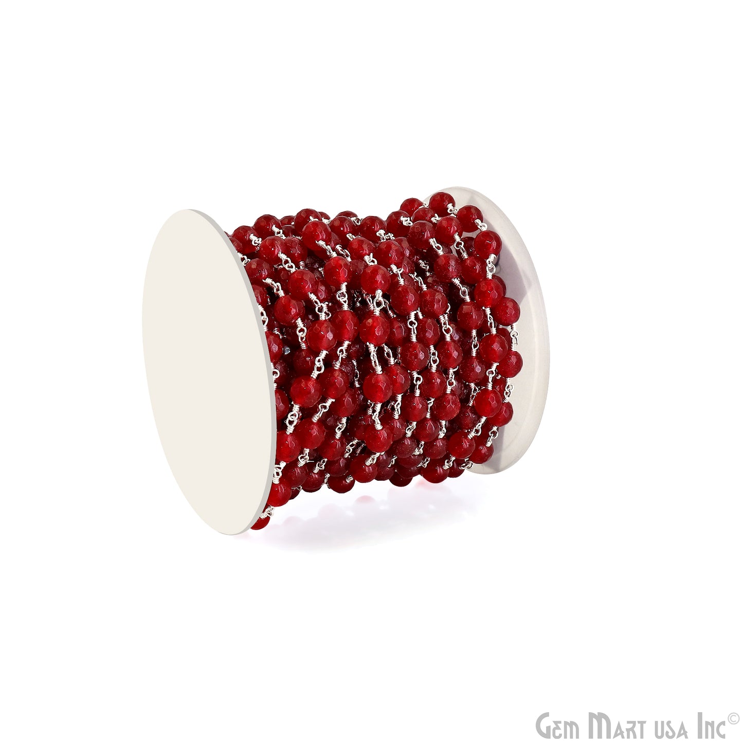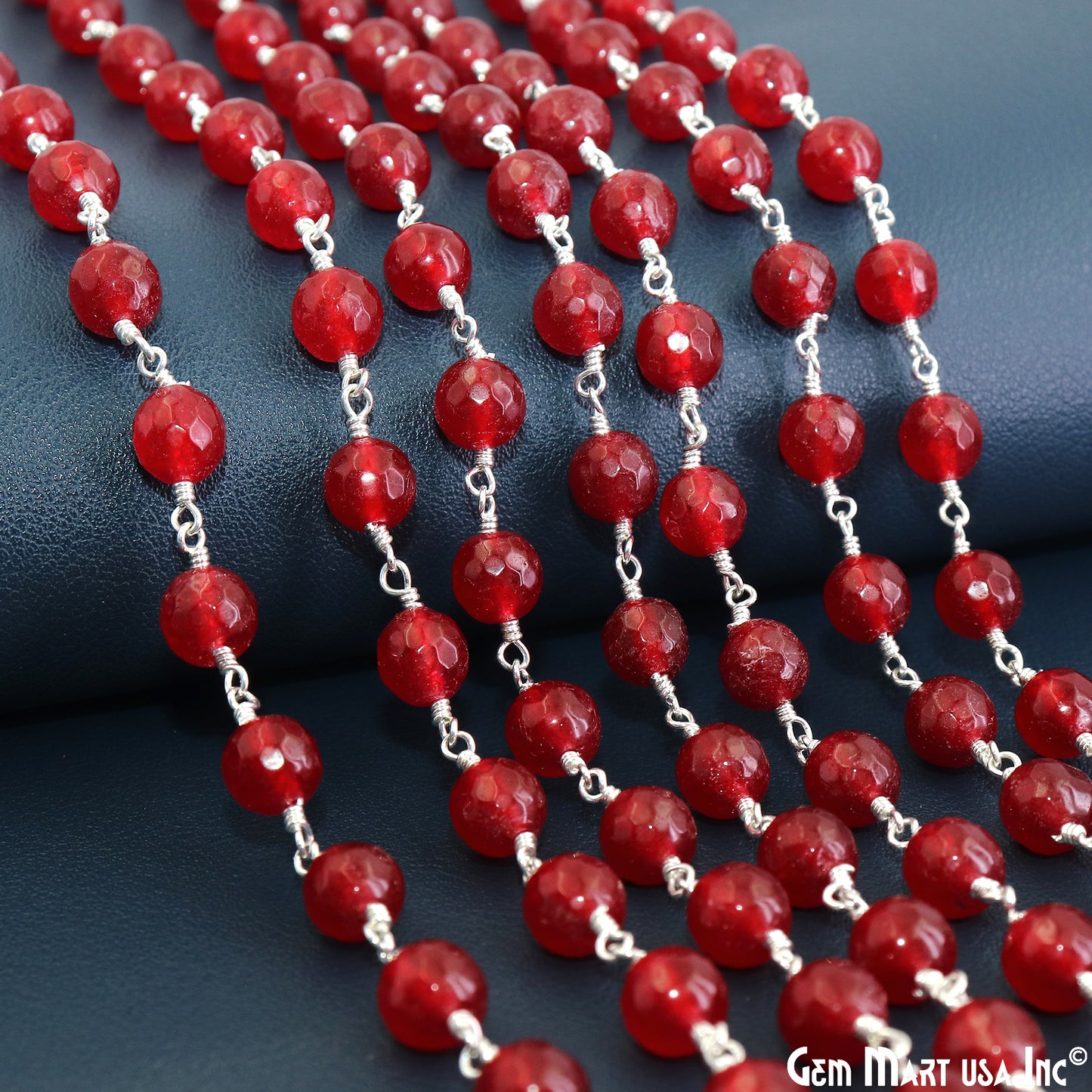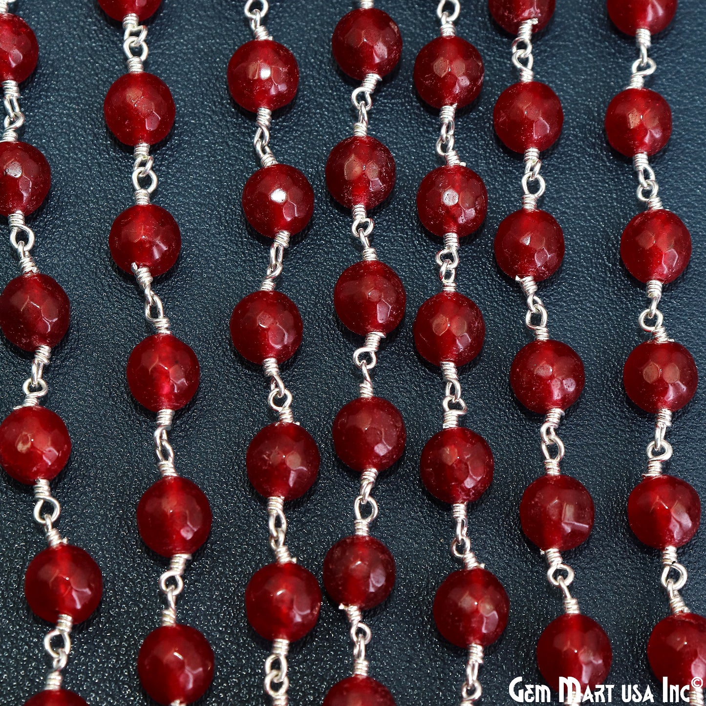 Red jade Faceted Beads 8mm Silver Wire Wrapped Rosary Chain