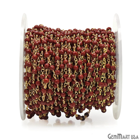 Red Jasper 3-3.5mm Beaded Gold Wire Wrapped Rosary Chain