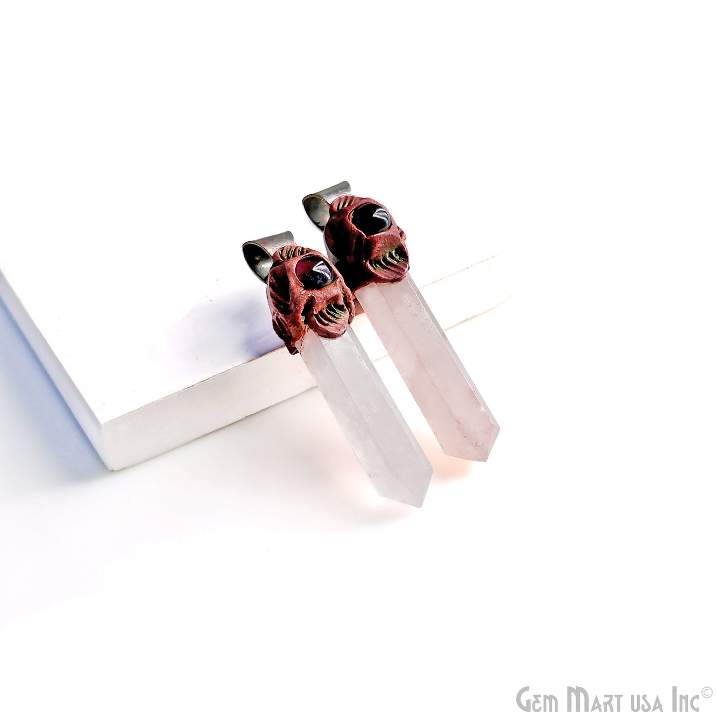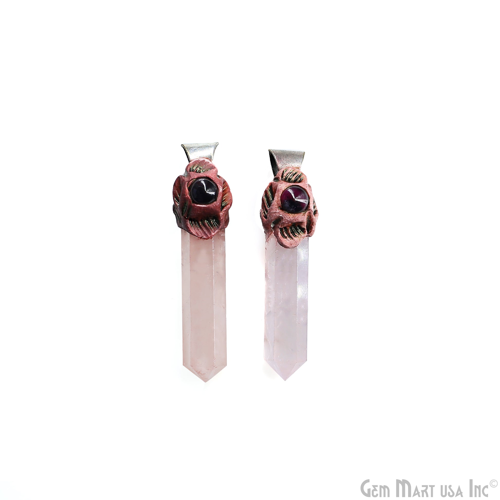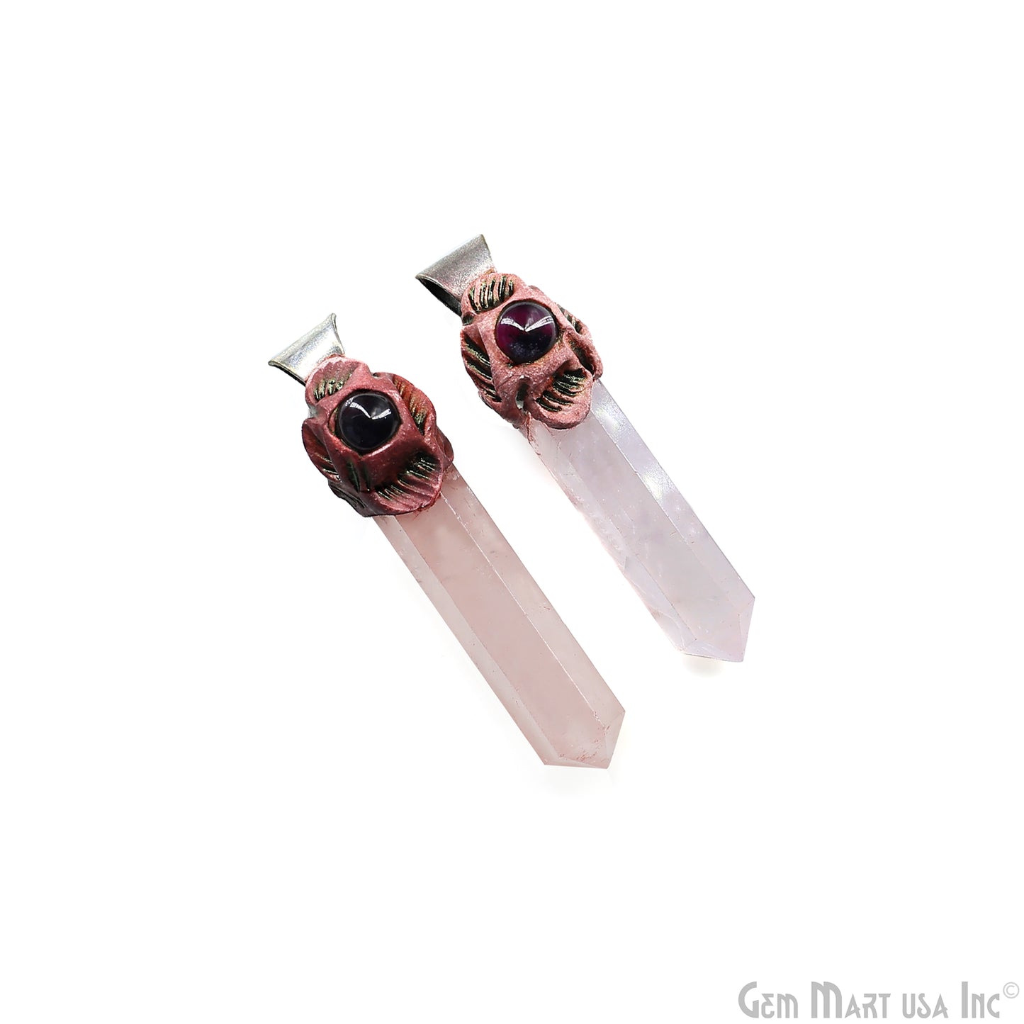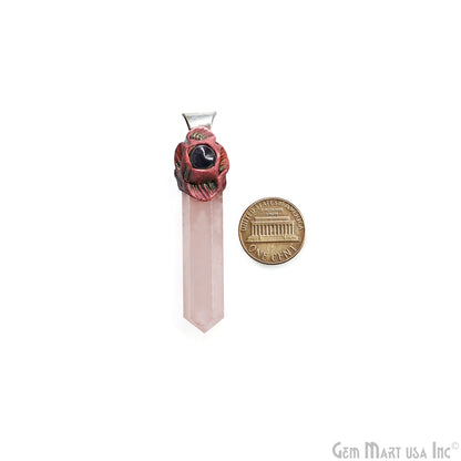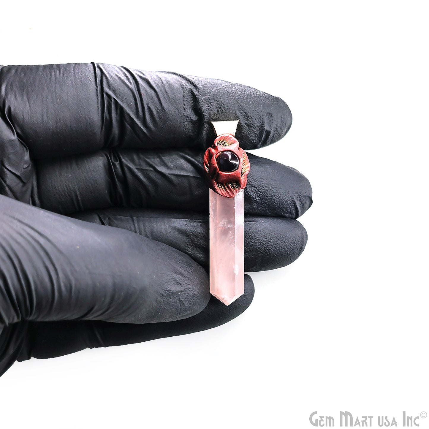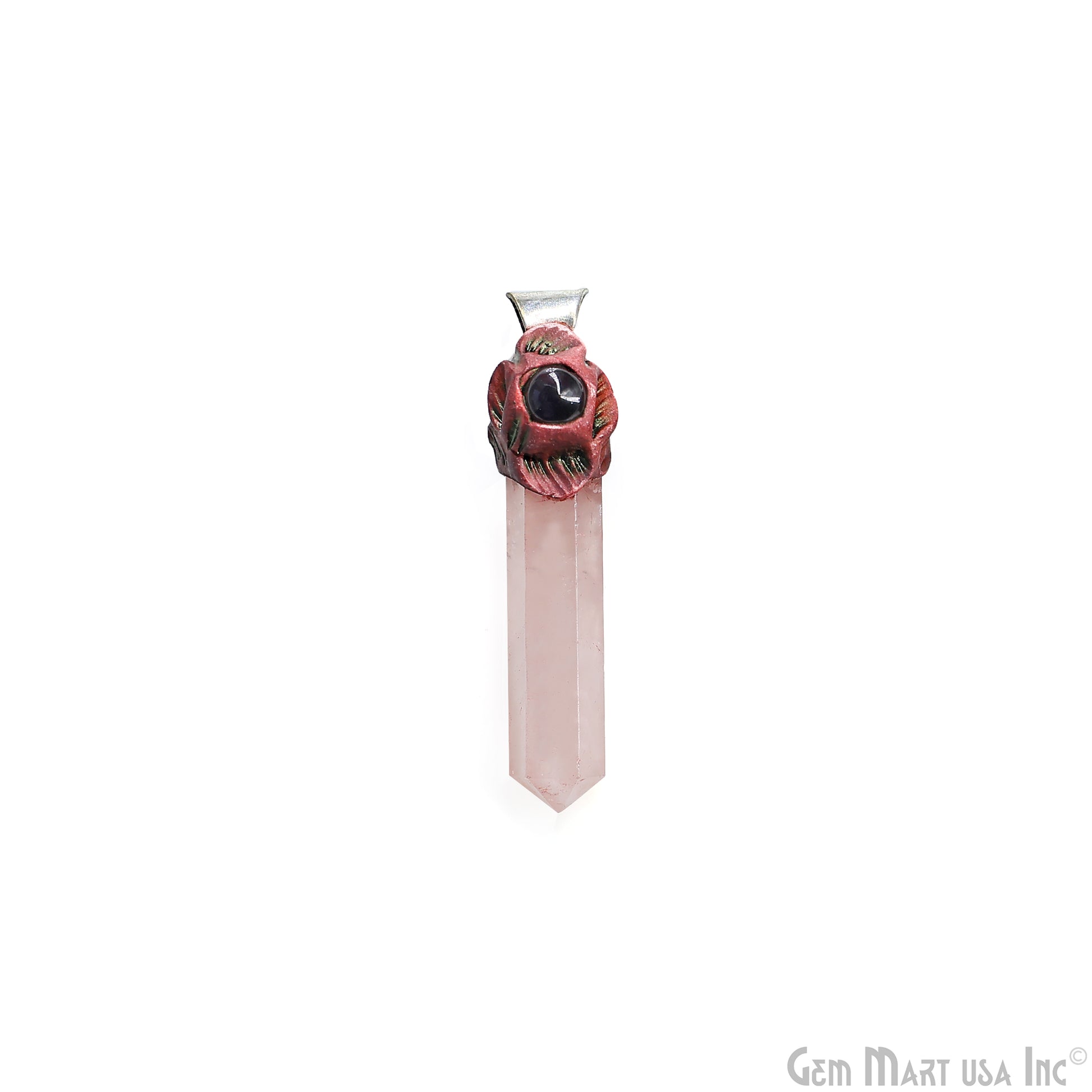 Rose Quartz with Garnet Polymer Clay Crystal Pendant, Silver Dowsing Single Bail Pendant