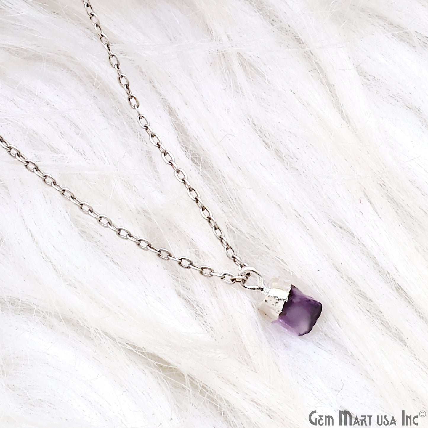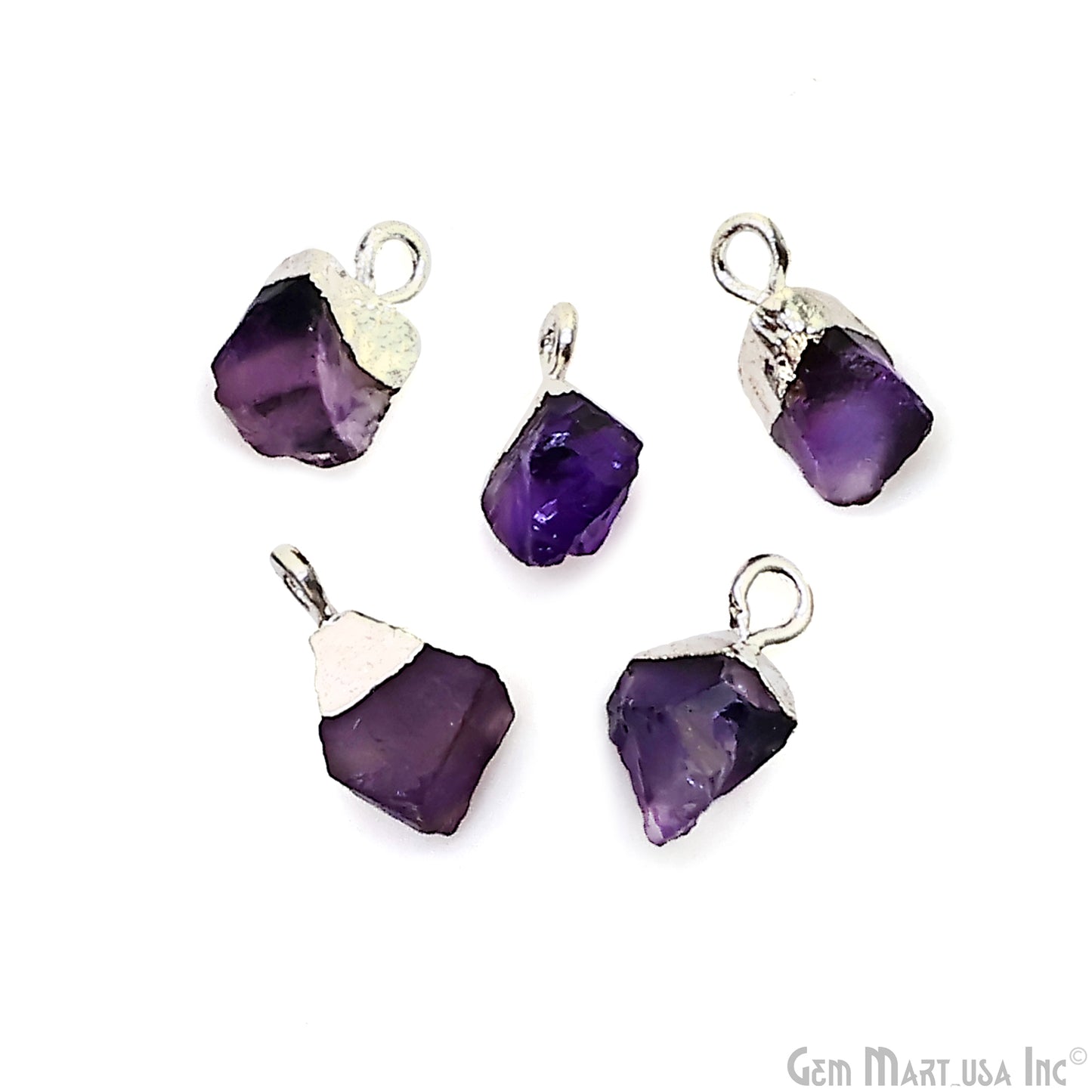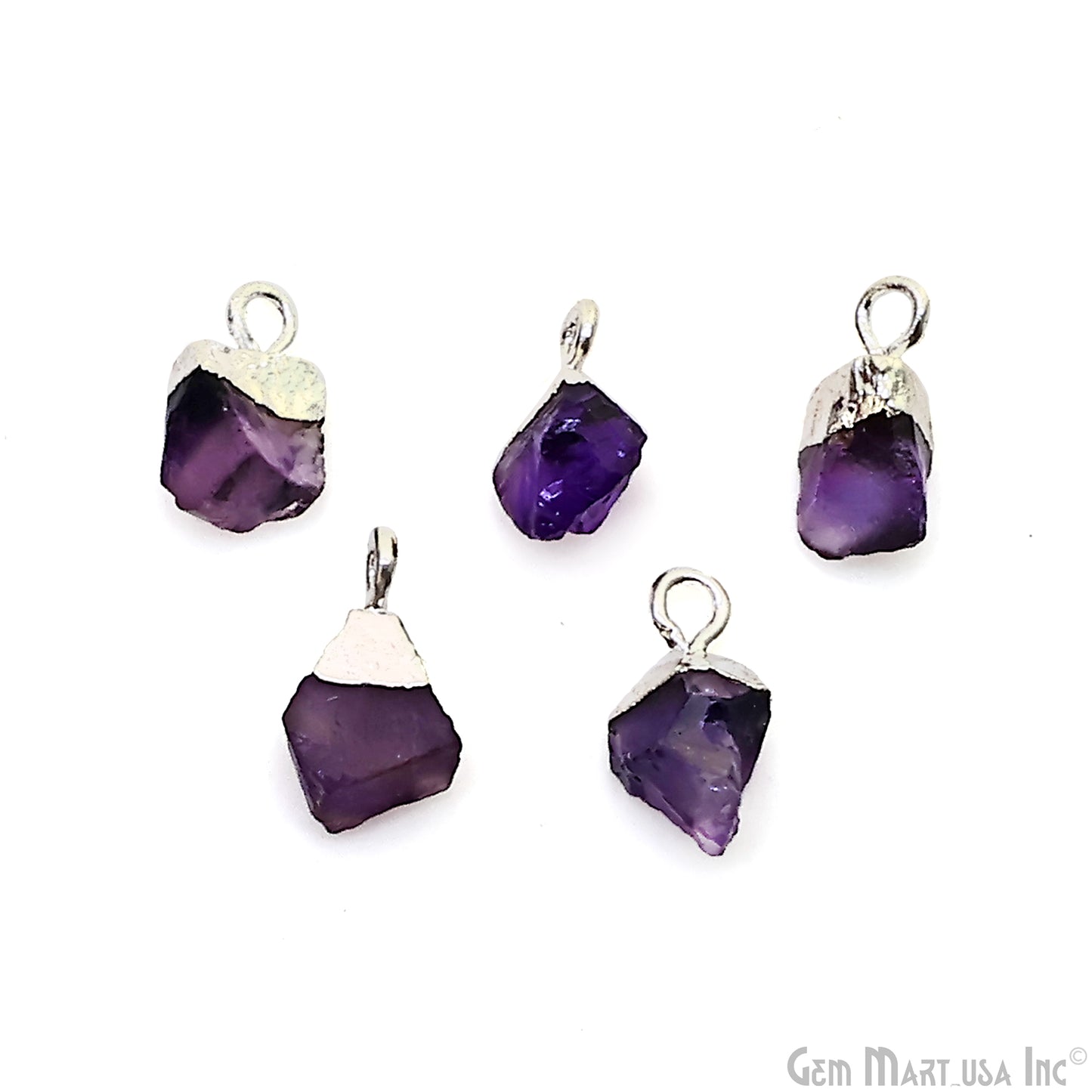 Rough Amethyst Gemstone Organic Silver Edged Single Bail Connector