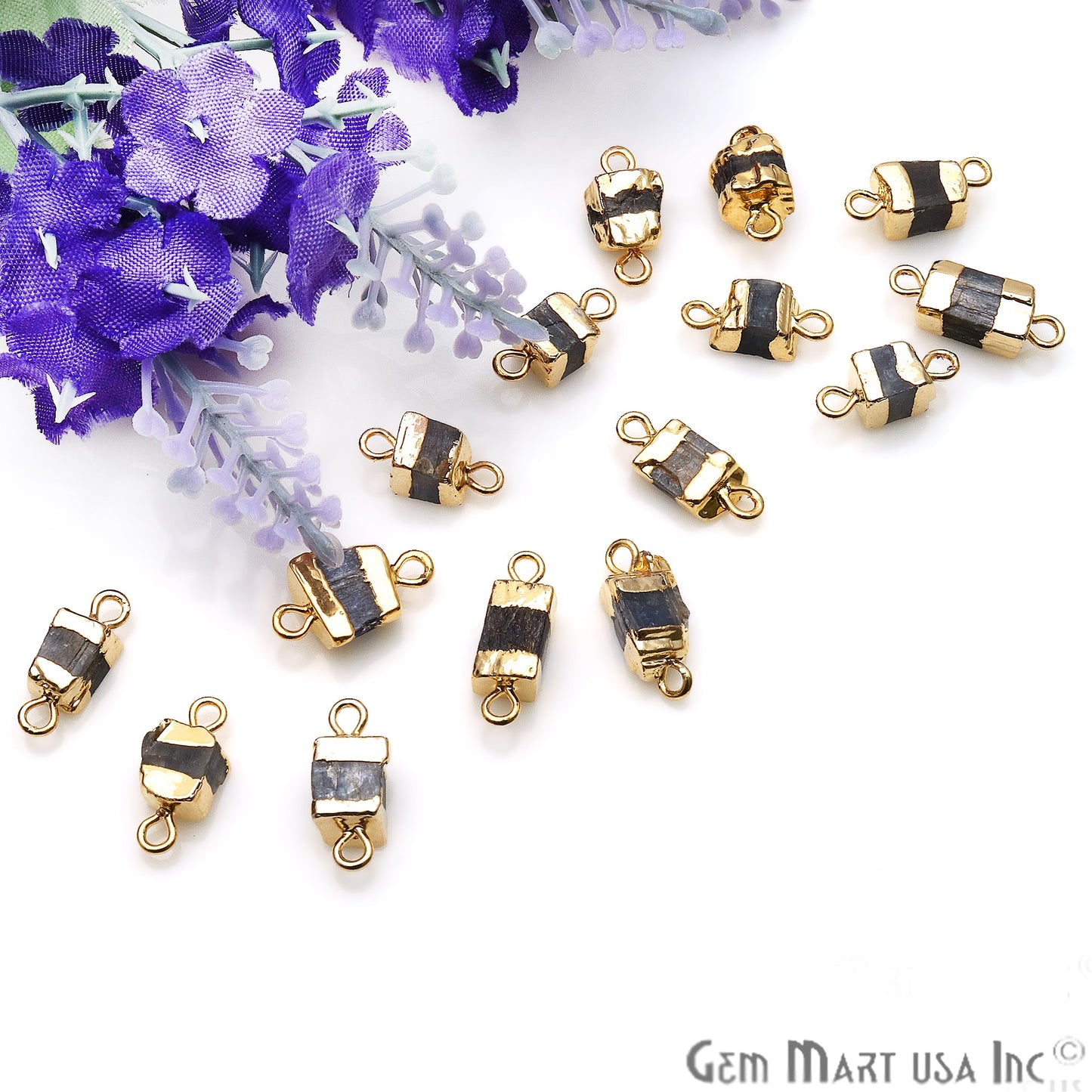 Rough Kyanite Organic 18x8mm Gold Electroplated Double Bail Pendant Connector